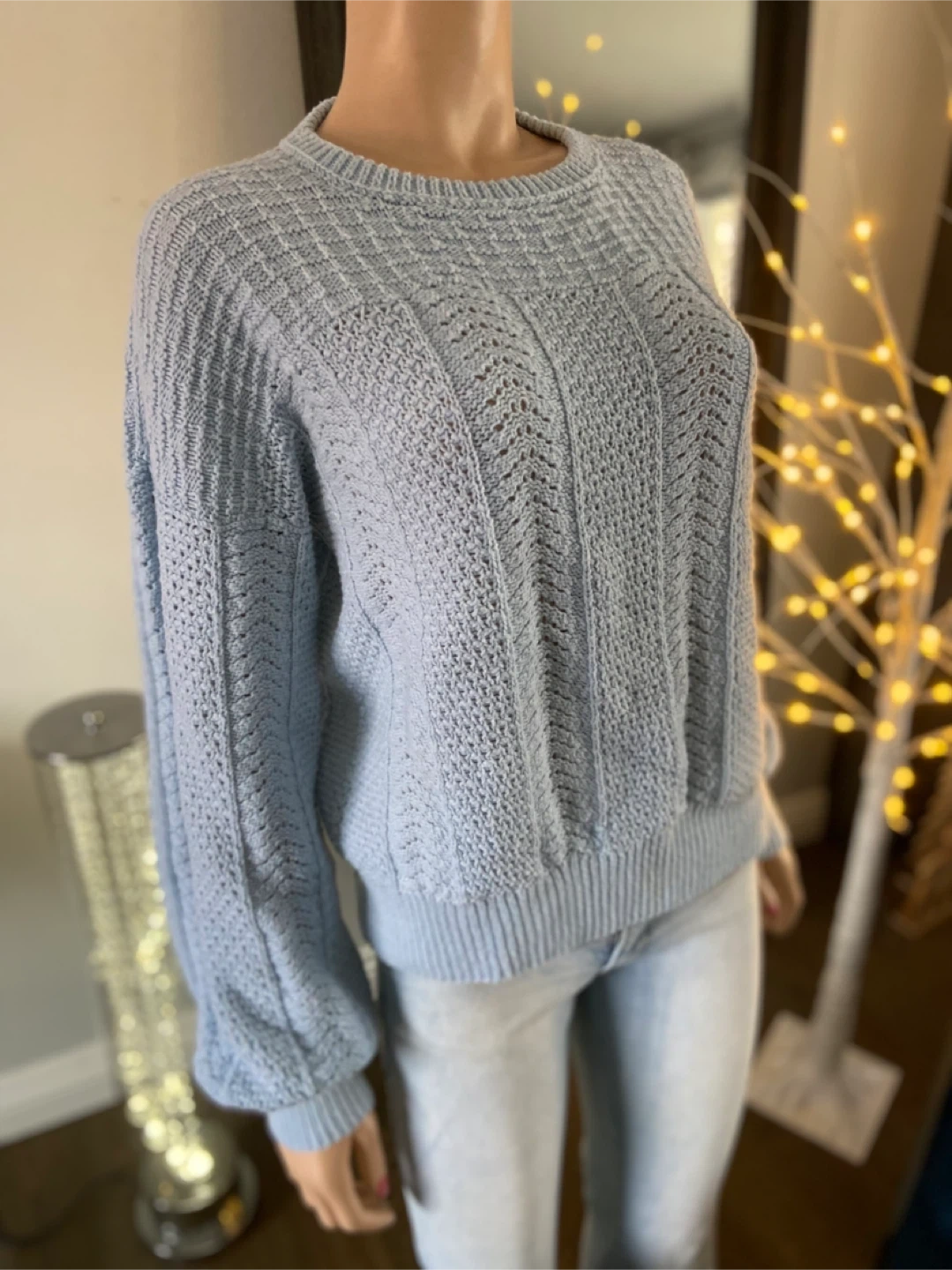 π₯ EUC: Light Blue Hand-Knitted Pullover Sweater S/M π₯