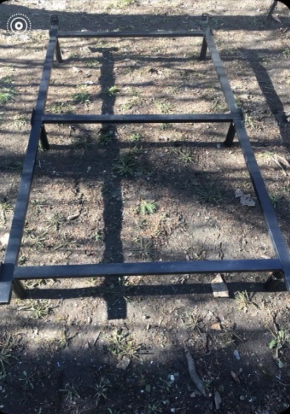 A sturdy metal bed frame base. It's black and made of metal. This frame provides solid support for your mattress.