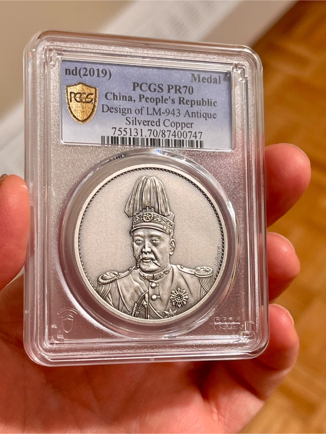 PCGS graded medal from the People's Republic of China. Design of LM-943 Antique, made of Silvered Copper. Graded PR70. Encased in protective slab.