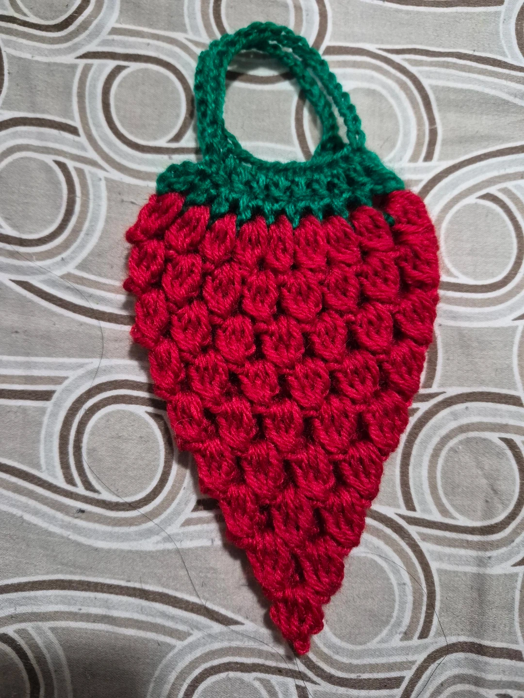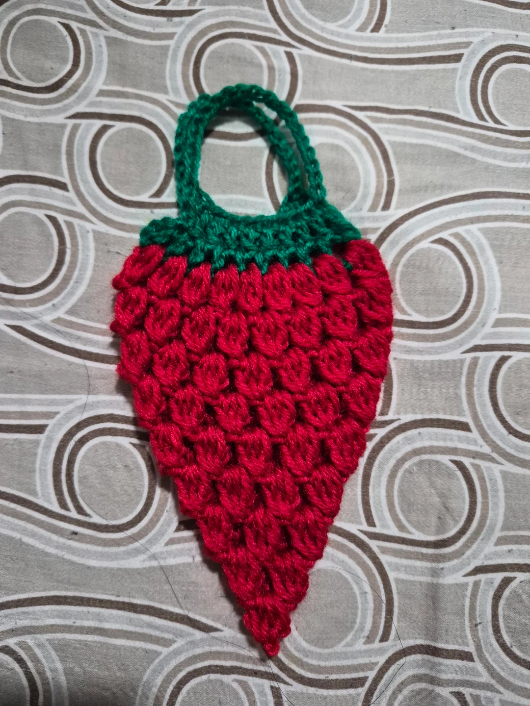 Super cute handmade crocheted strawberry pouch. It's red with a green top and loop. Perfect for small change or trinkets!