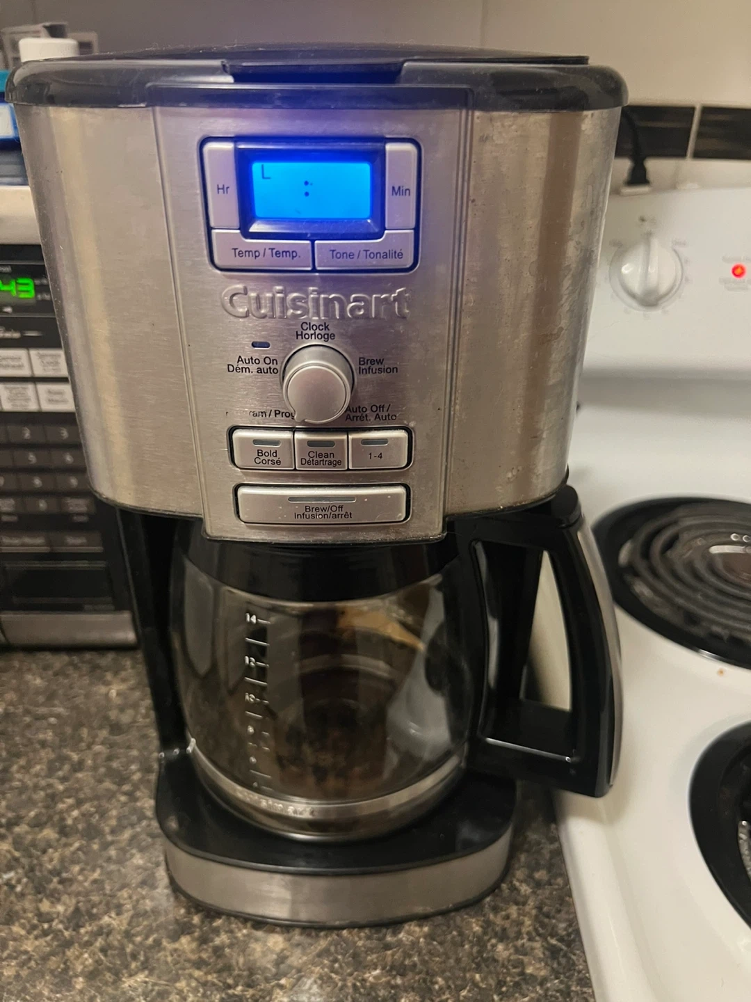 Selling a Cuisinart coffee maker. It's programmable with an auto-on feature, and you can adjust the brew strength to your liking with the bold option. It also has a self-clean function, making maintenance a breeze