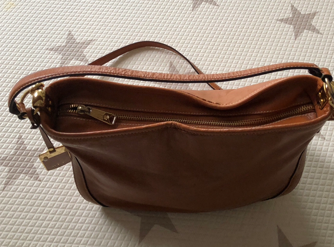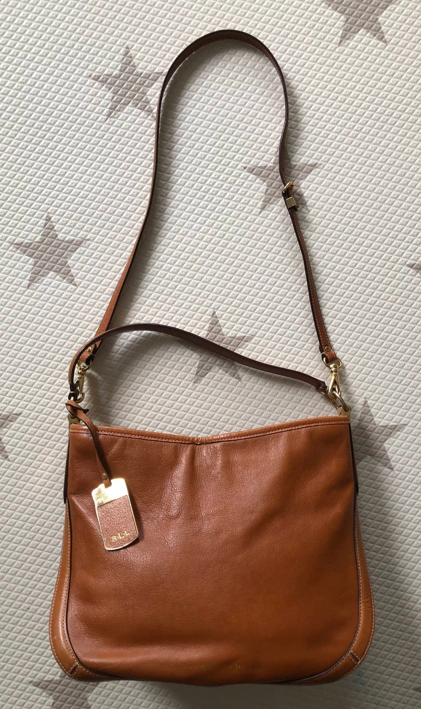 Lauren-Ralph Lauren-NWOT-beautiful light brown colour- finely tanned leather purse-with gold hardware-has handles and a removable shoulder strap- the sides have snaps to change it to amore roomy bag-original dust bag is included- bag has 3 compartments centre compartment has a zipper one of the other 2 compartments has a pocket for your cell phone