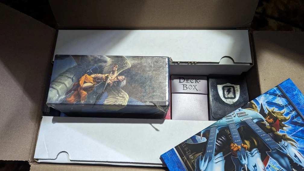 I'm getting rid of a bunch of trading cards. It's mostly common and rare Yu-Gi-Oh! cards (90%). There are some Pokemon and Final Fantasy cards in there. Bonus: A bunch of deck boxes and card sleeves.