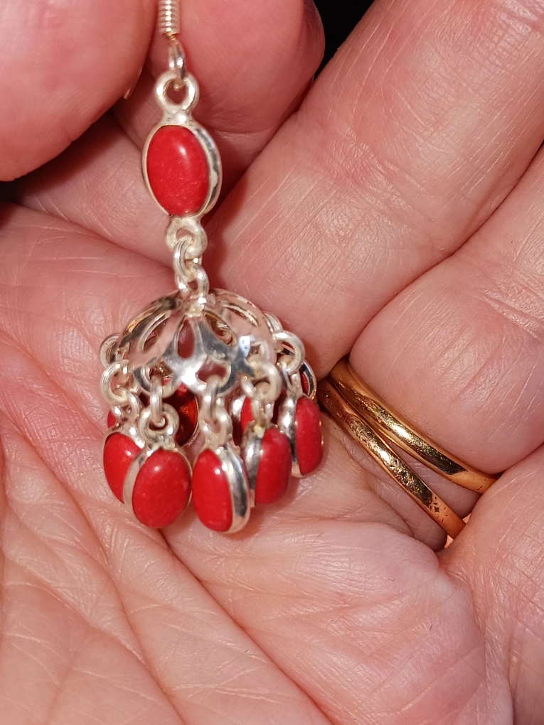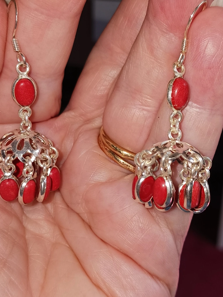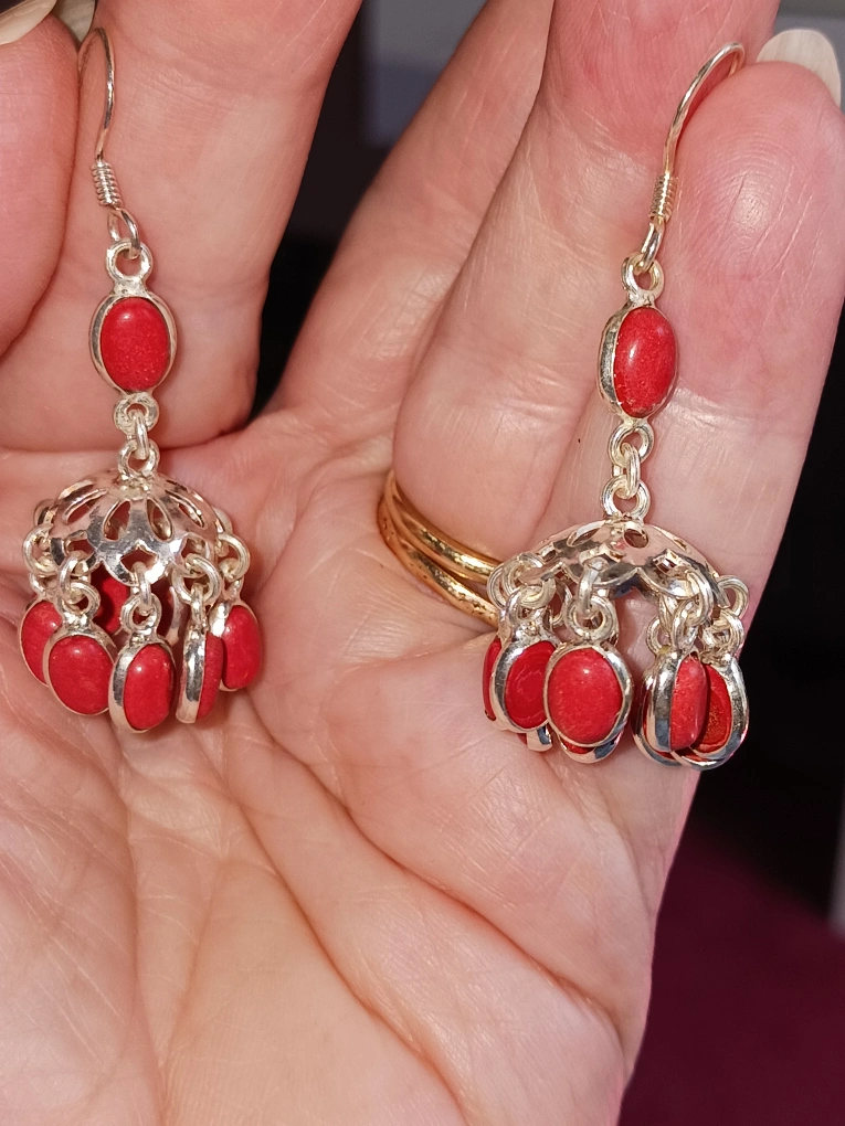 Beautiful red coral gemstone earrings with sterling silver wires. Pickup Winston Churchill and Derry Mississauga or I can mail for $5