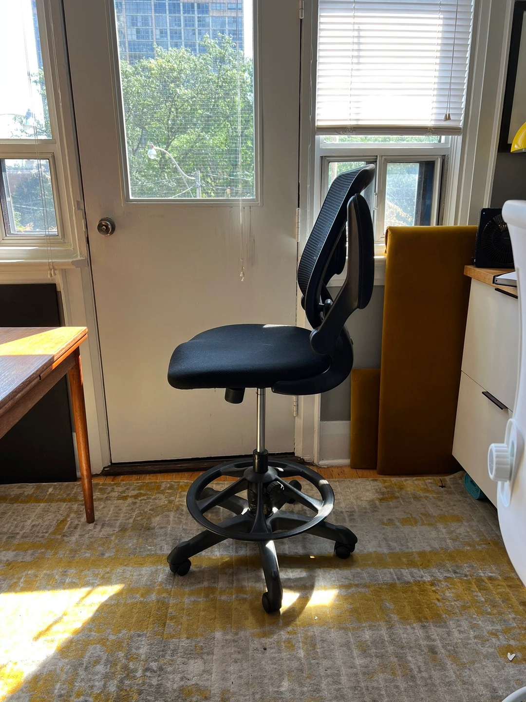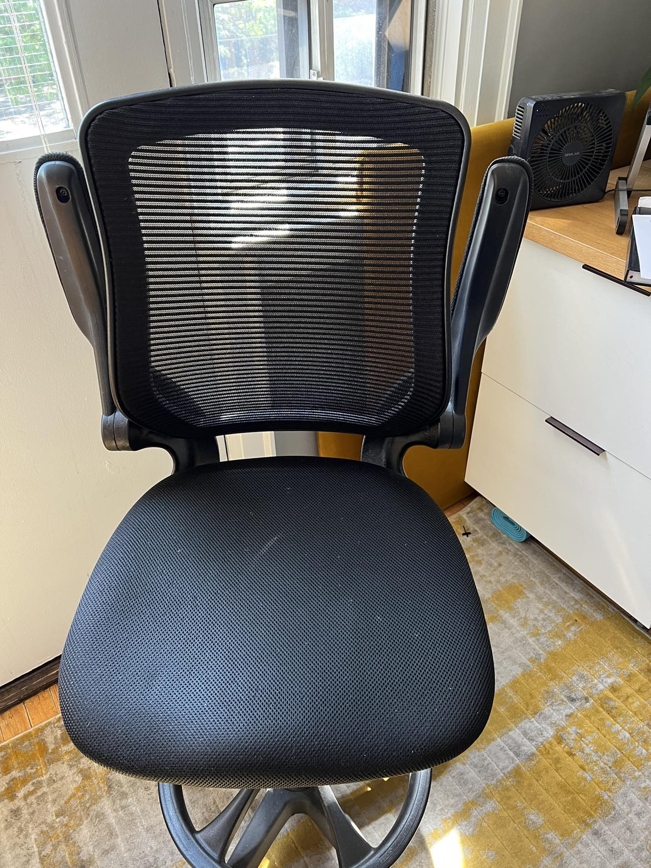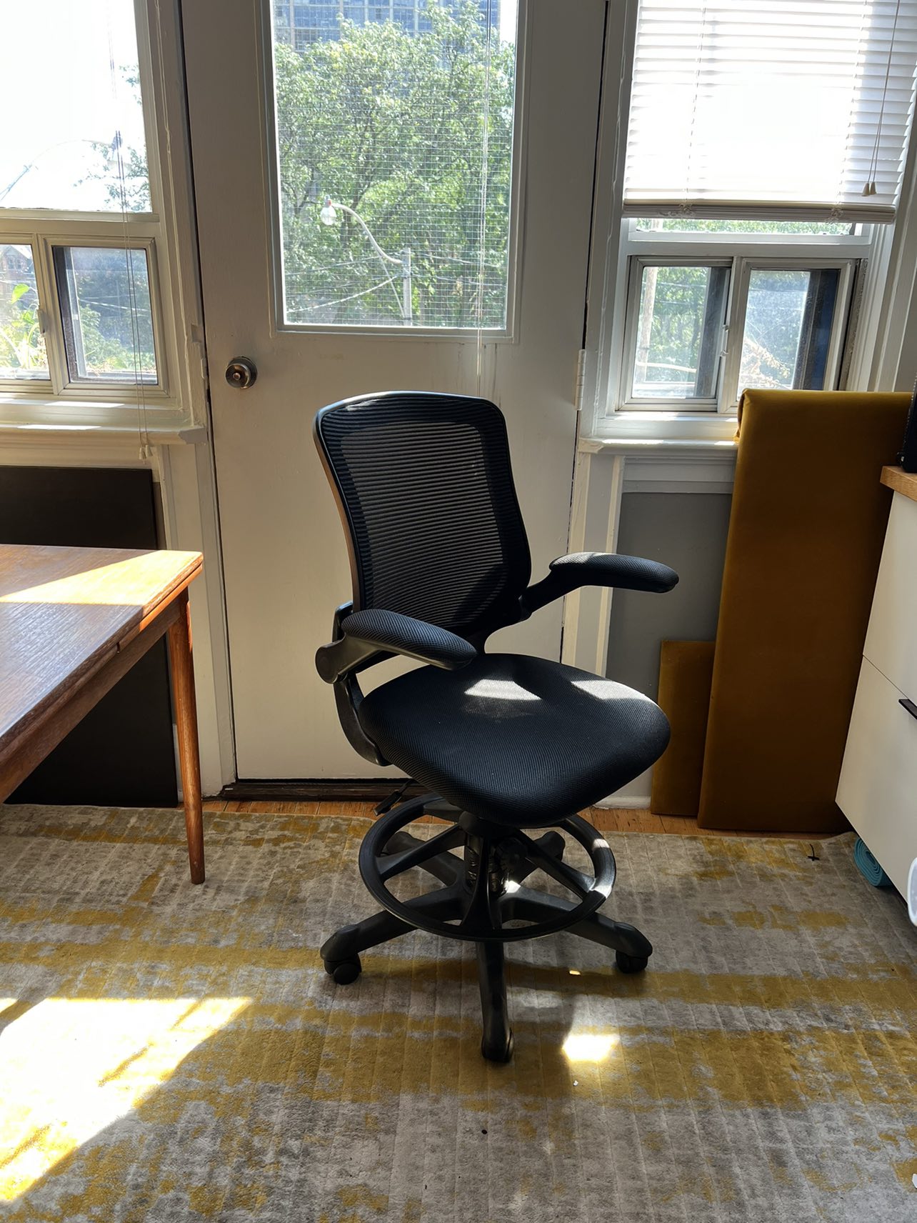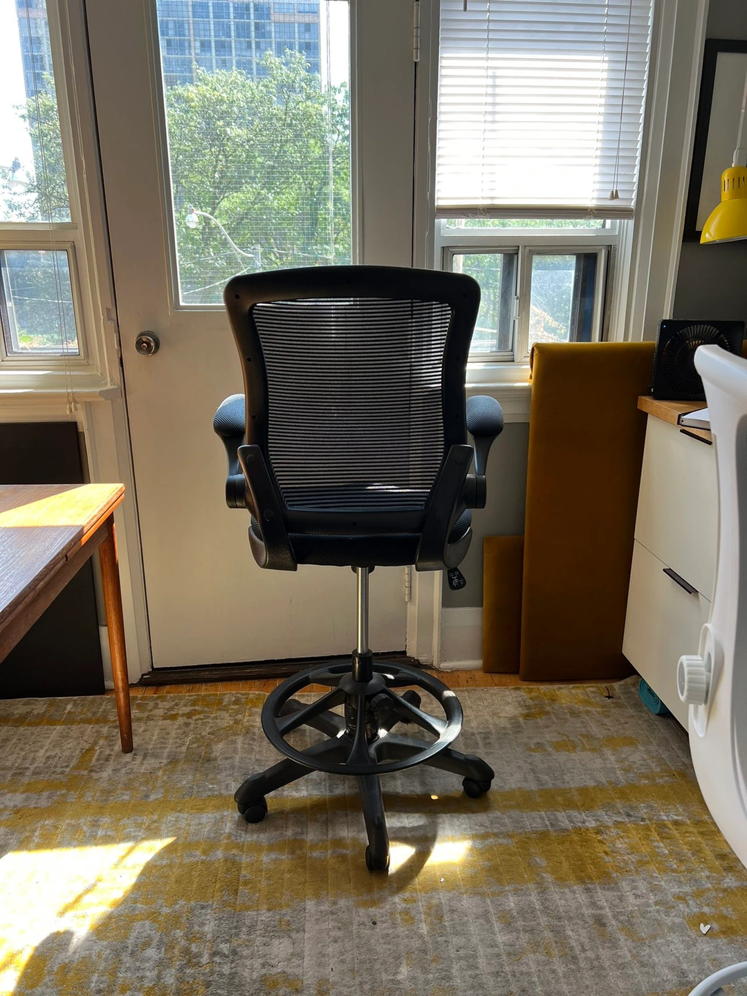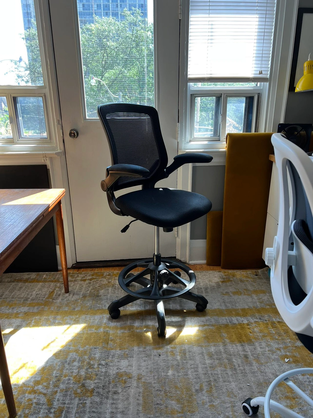 Satisfy all the professionals in the office with a high standing desk, with this ergonomic Drafting stool with flip-up arms. The contemporary high Back draft chair serves as your dual office chair, to be Enjoyed as an armless chair or with arms.