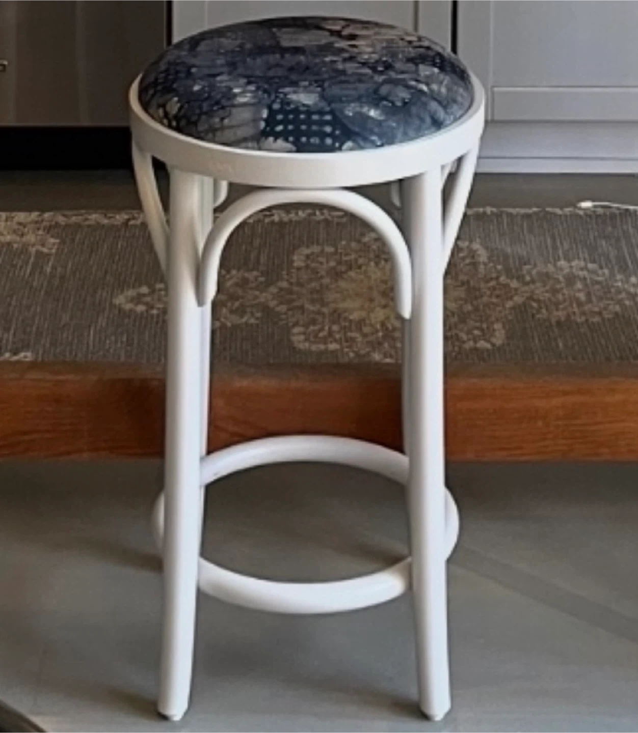 Custom upholstered seat cushion in a stunning designer fabric (blue pattern)