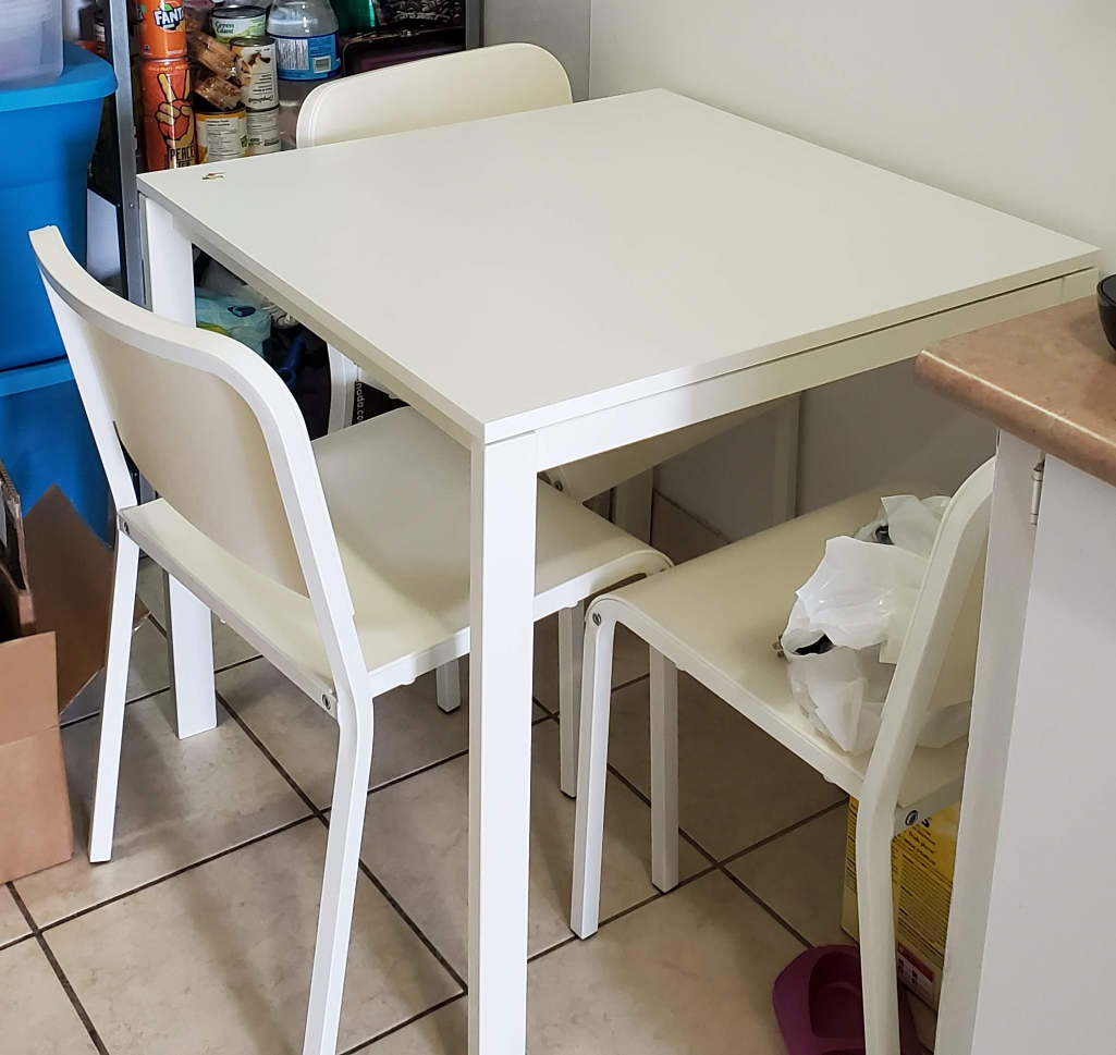 A white ikea dining set. Table and 3 chairs.