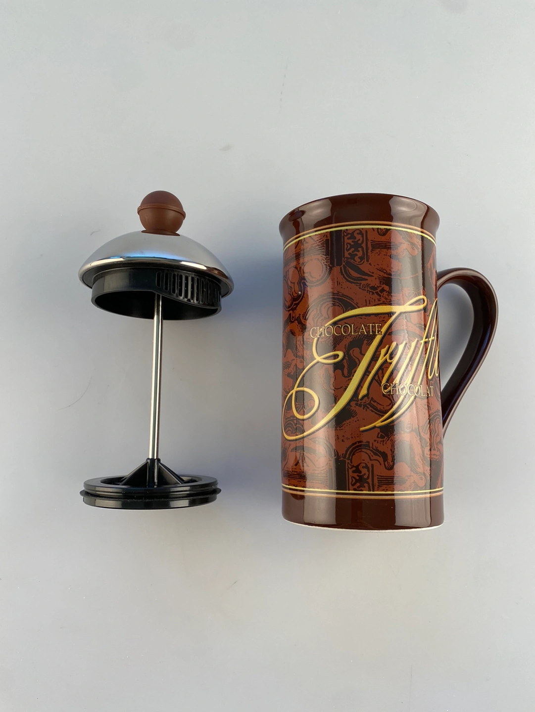 Hot Chocolate Brown Mug with Frother Truffle Gourmet Village