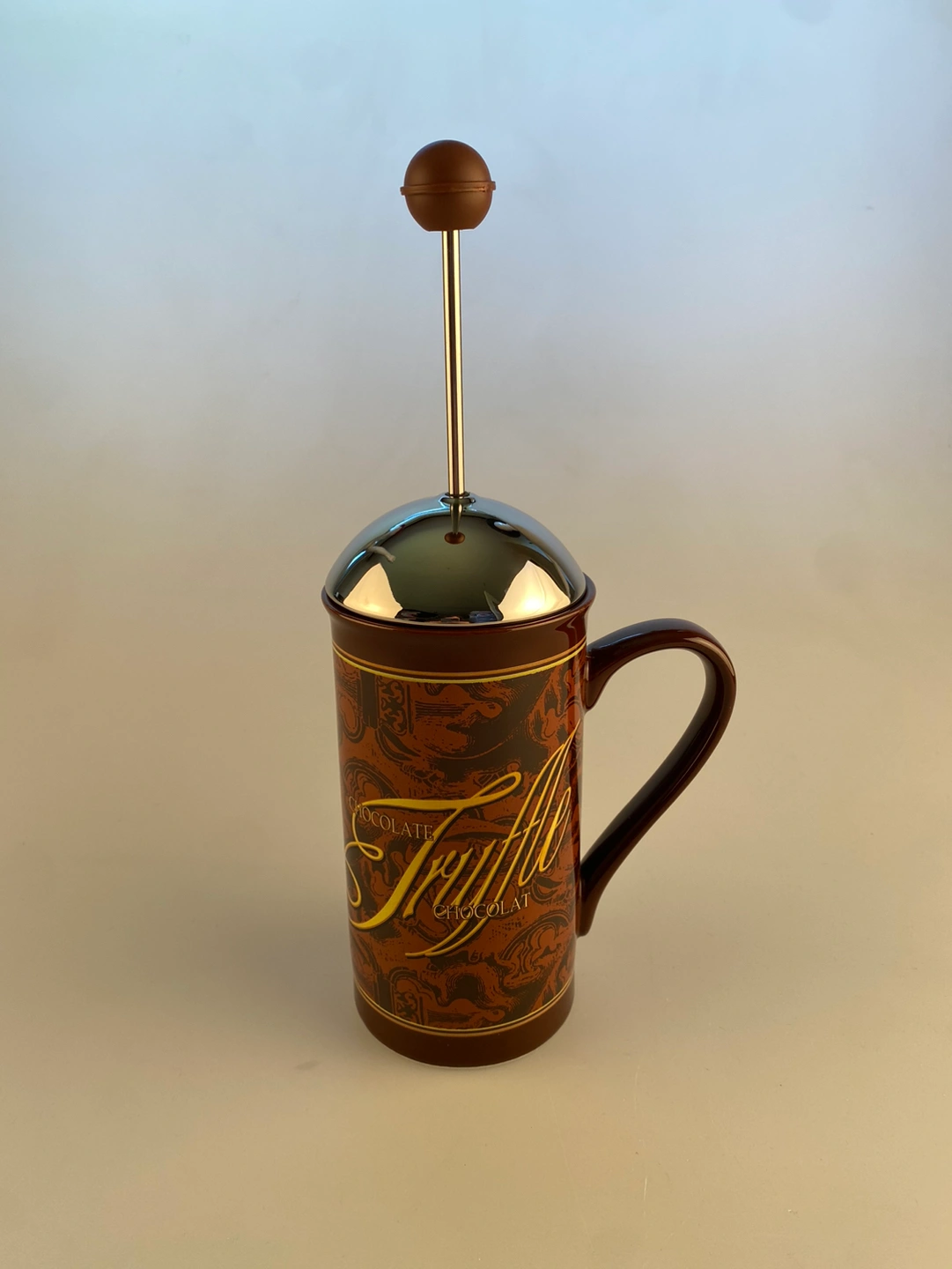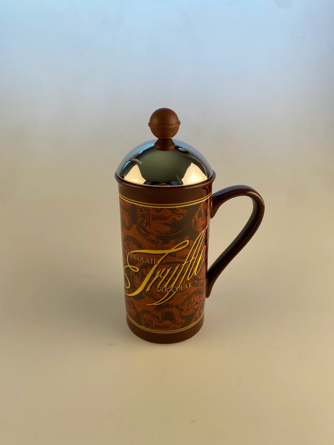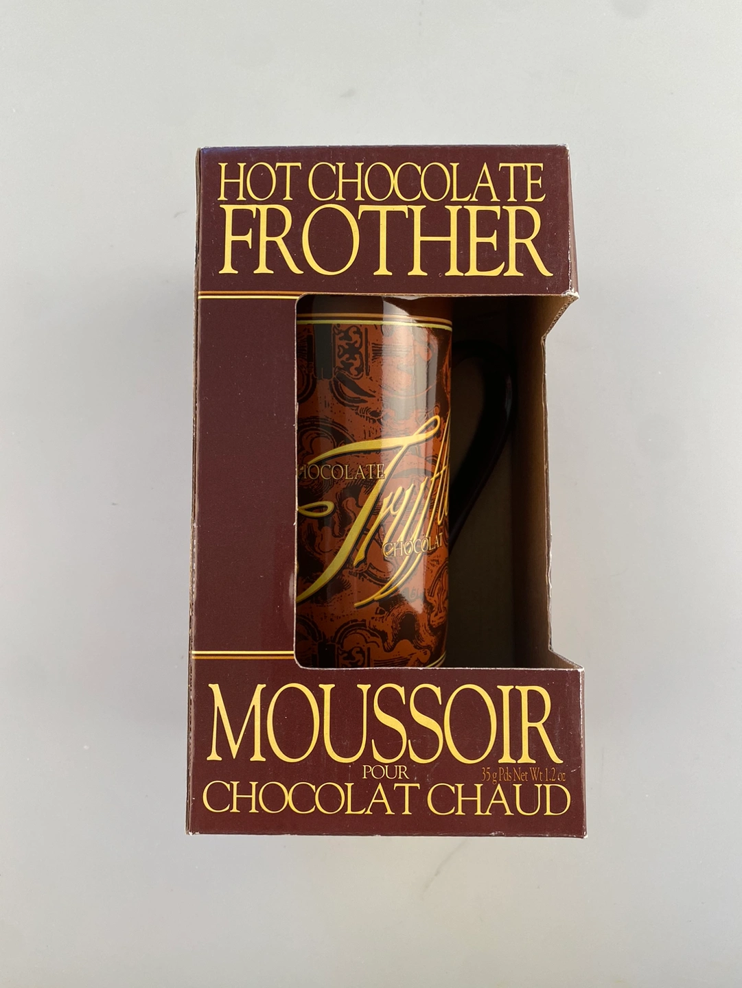 Make instant hot chocolate extra tasty with this Gourmet Village Brown Truffle Hot Chocolate Mug with Frother. Just add hot water, warm milk, or your favourite warm milk alternative to hot chocolate powder, froth, and enjoy! New in Box. I tossed the 10+ hot chocolate that originally came with the mug & frother set.