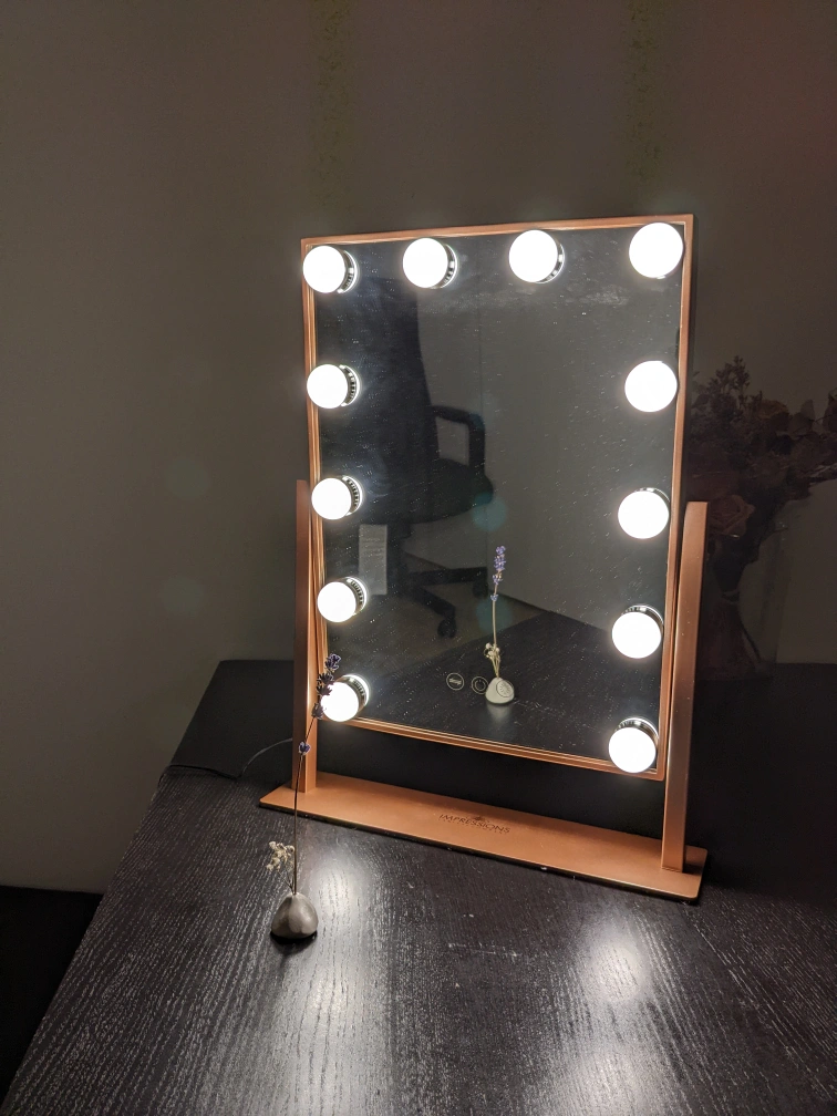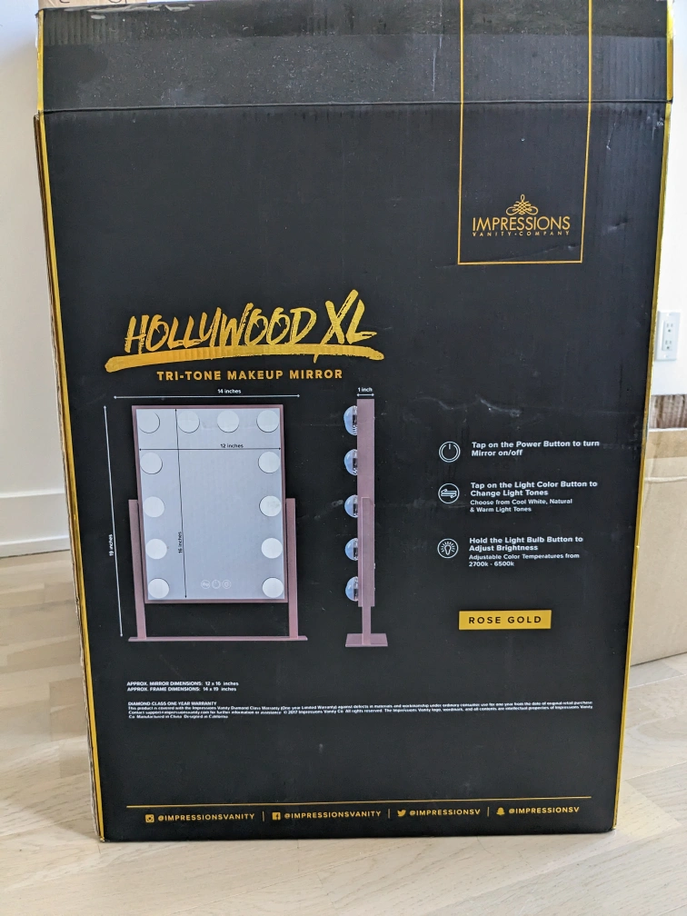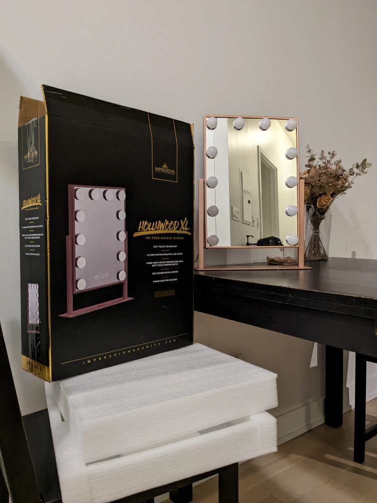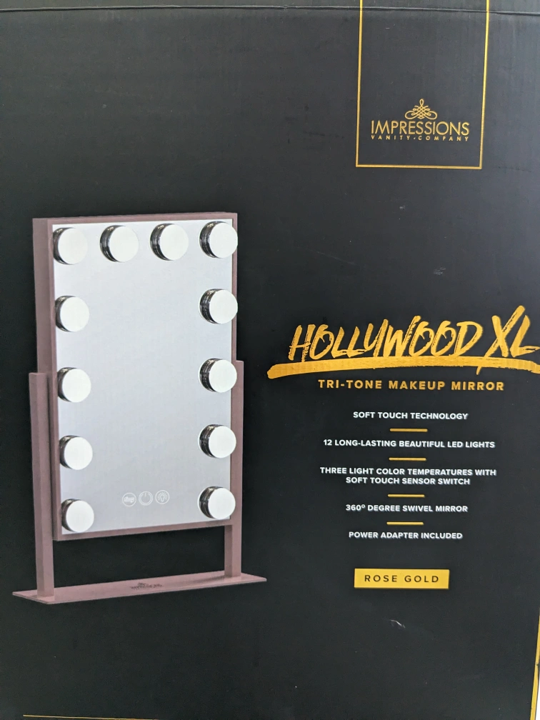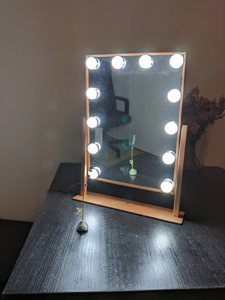 Hollywood XL vanity mirror with tri-tone light settings and rose gold frame. Soft touch technology for adjusting light colour temperature settings. Makes you feel like a Hollywood star π