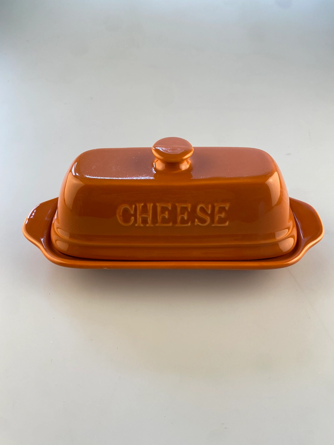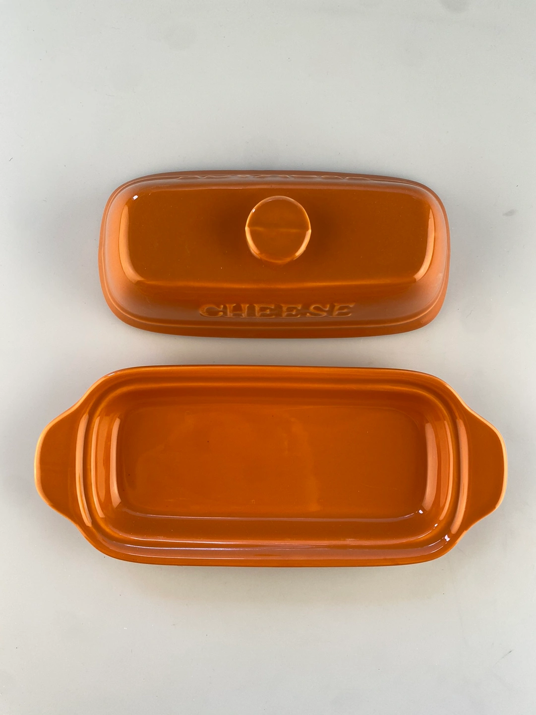 Make the tastiest goat cheese ever! Just add seasoning, bread crumbs, or nothing at all to a log of goat cheese and bake. This burnt orange goat cheese dish and lid set from Gourmet Village comes with a tray and loose fitting lid to keep your cheese covered and warm.