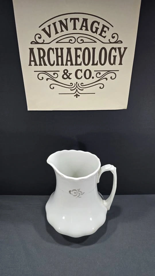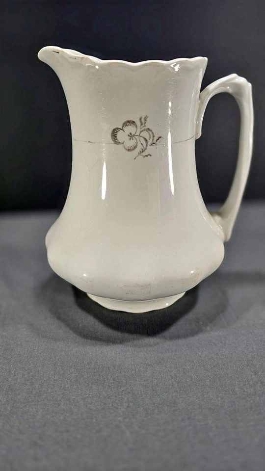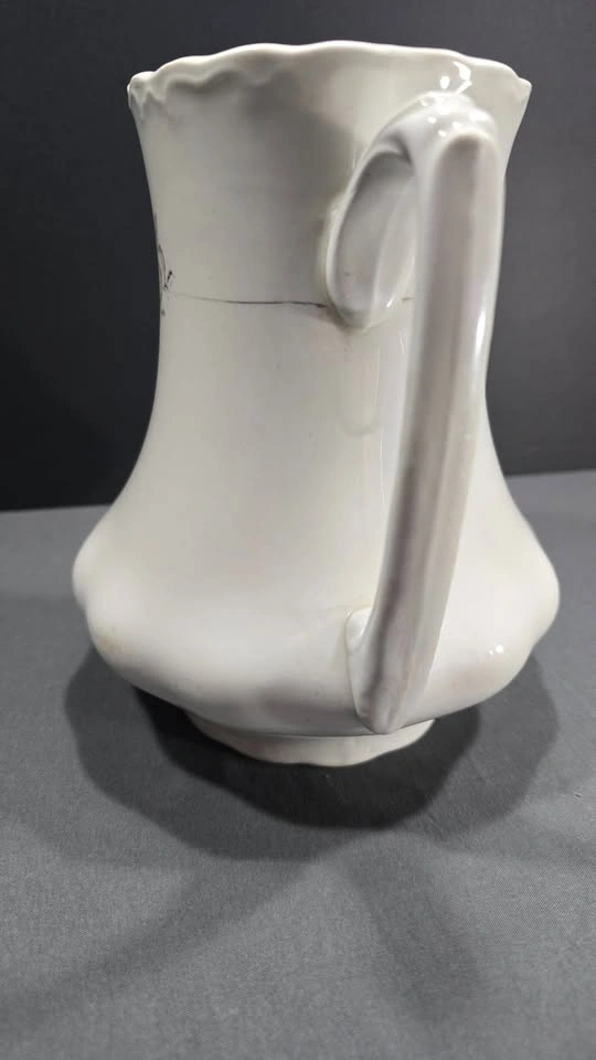 A floral English Jug from 1890-1920. This style of white ironstone pitcher was widely produced in England and America during the late 19th and early 20th centuries.