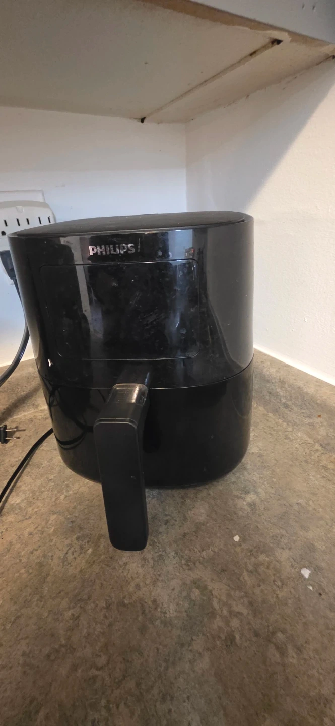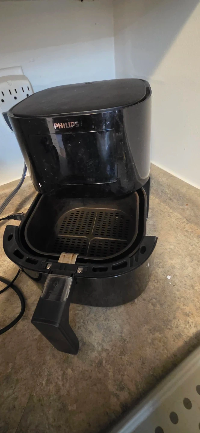 Black Philips air fryer. It's in good working condition and ready for a new kitchen. Basket is removable for easy cleaning.