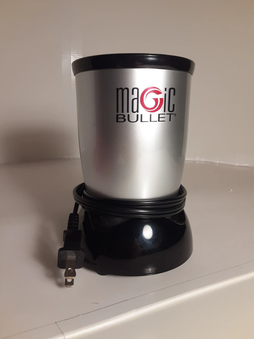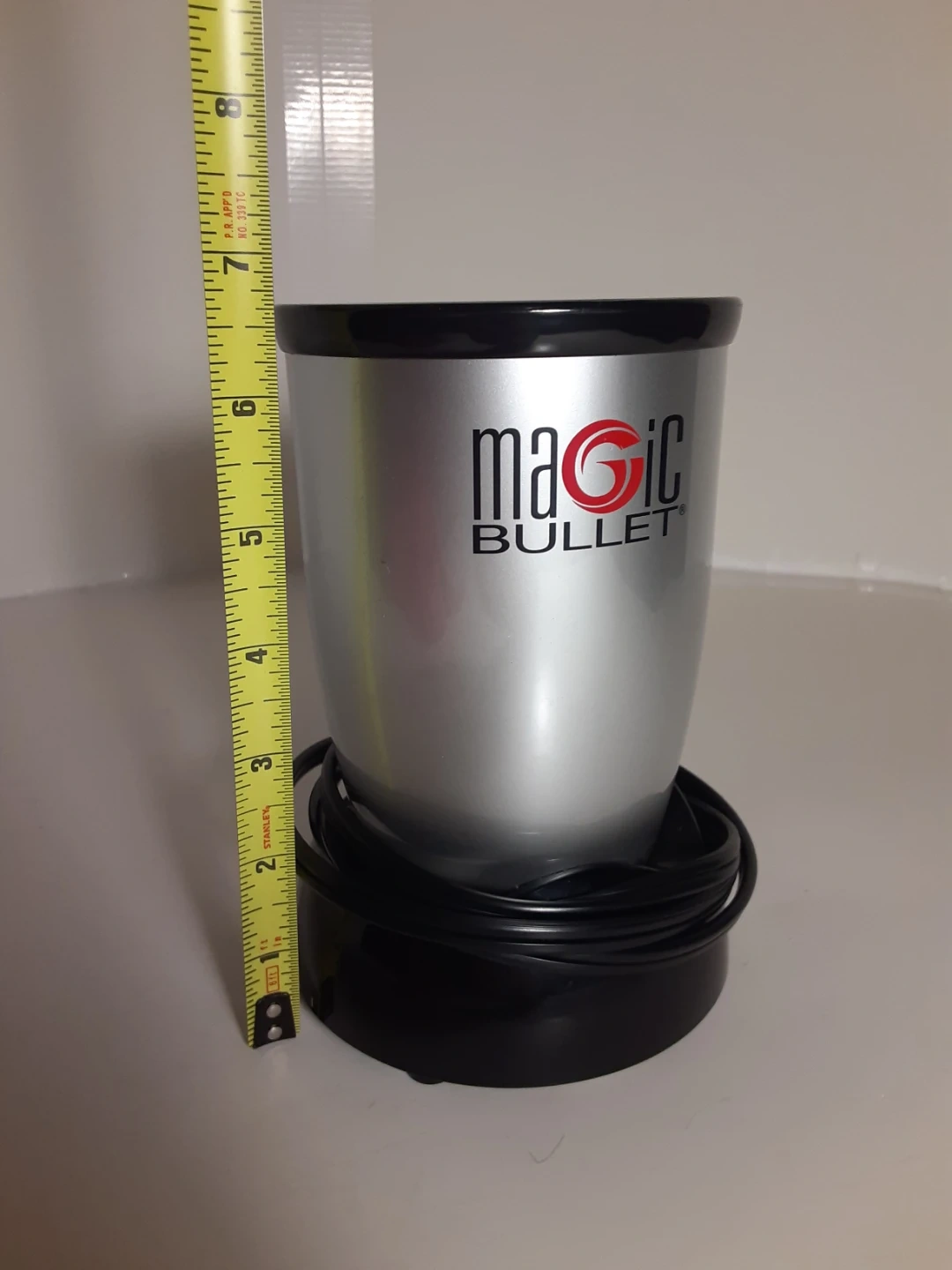 This is a Magic Bullet blender set. It includes the blender base(tested and working), three cups, two blender cups, 4 coloured cup rims(4th cup missing) multiple lids with different uses and the two different purposed blade attachments(missing box/manual/recipe book). Shows signs of age/cosmetic damage/moderate use however is in good, working condition.