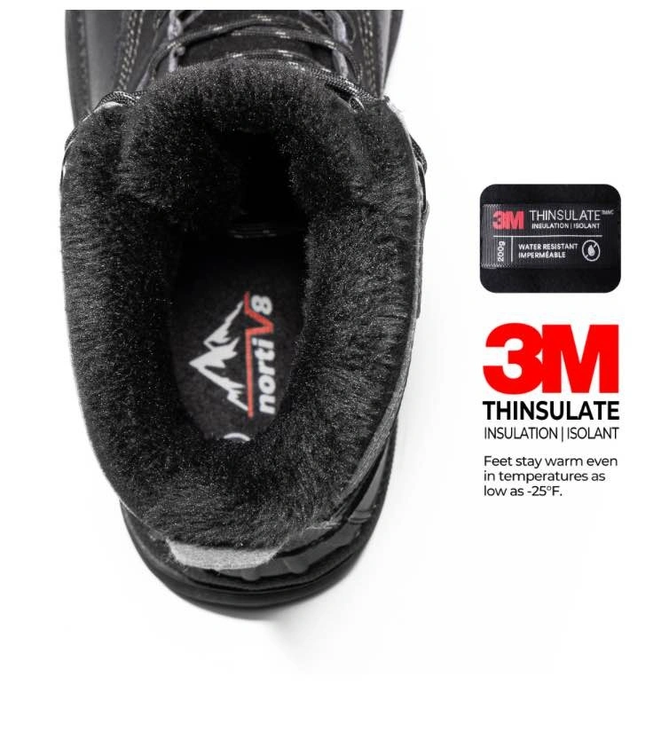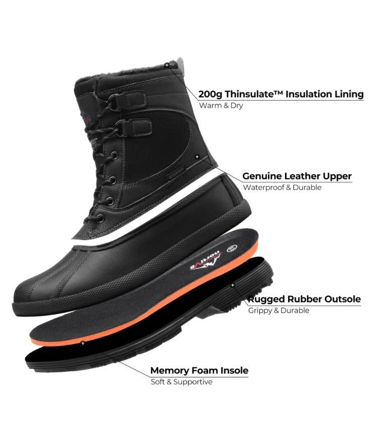 Warming system: 200g 3M Thinsulate keeps your feet warm and dry even when the temperature is -25F. 3M Thinsulate provides about 1 1/2 times the warmth of down and about twice the warmth of other high-loft insulation materials when equal thicknesses are compared. Men snow boots feature waterproof construction for waterproof & windproof and a synthetic toe cap for anti-collision. The rubber outsole is stable, slip & abrasion resistant and flexible for various outdoor terrain. Perfect for daily winter wear and outdoor sports like skiing, snowmobiling, and ice fishing.