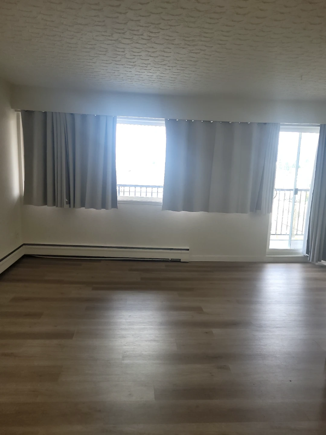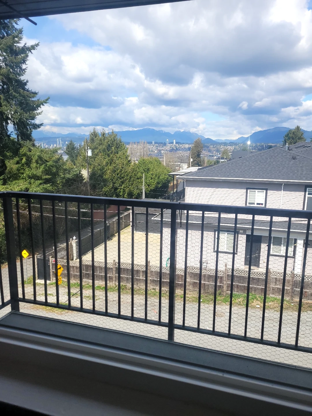 Spacious living area with new laminate flooring. Includes a balcony offering scenic city and mountain vistas. Close to amenities and transit.