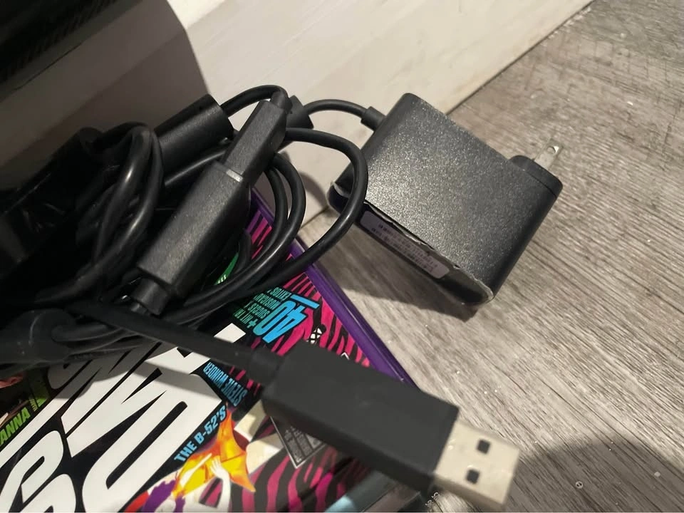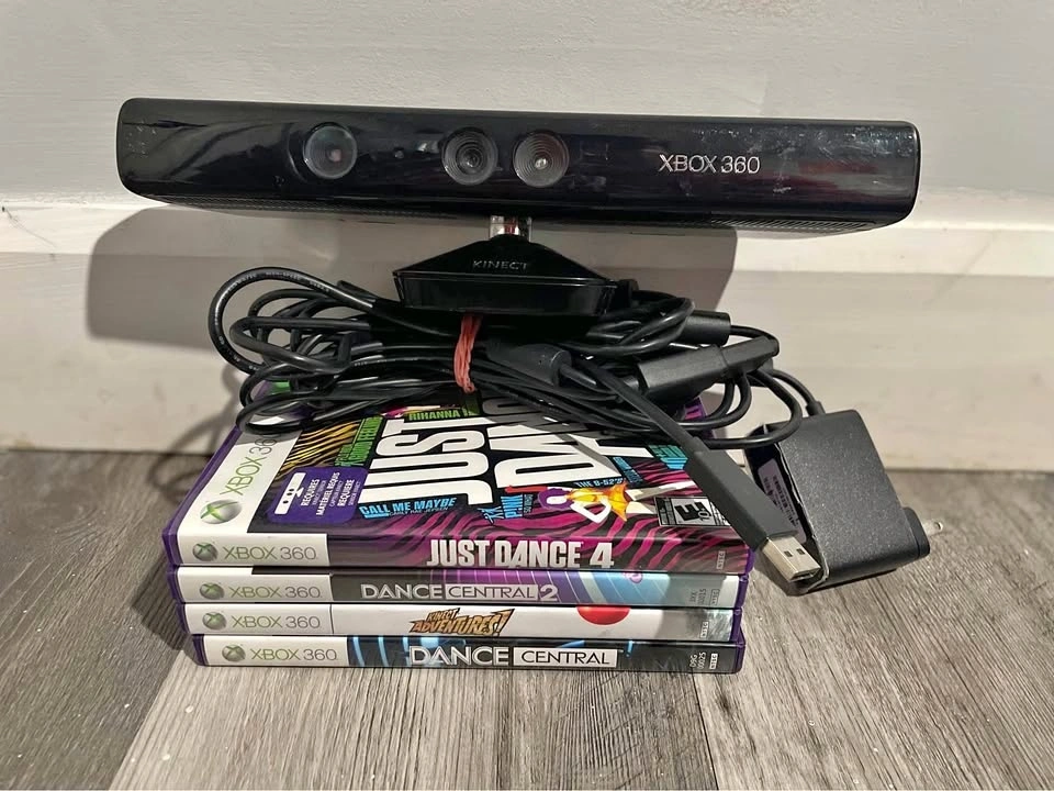 4 games and Xbox 360 Kinect with the adapter to either plug into the wall or to plug into the Xbox! Everything has been tested and works great!
