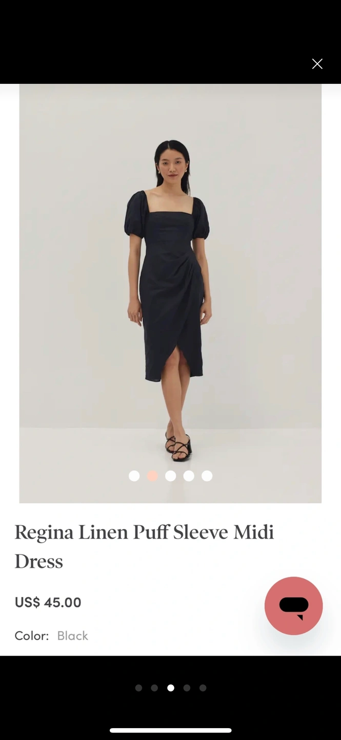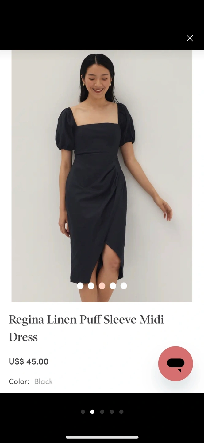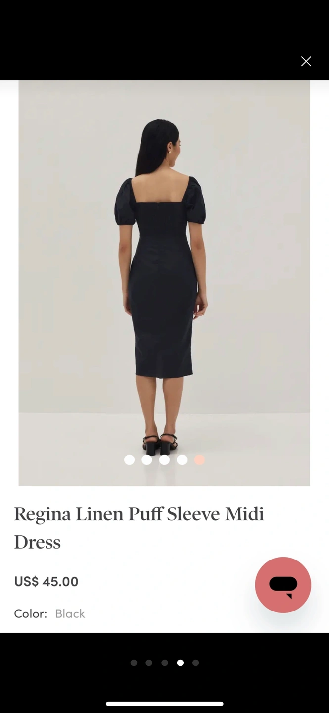 BNWT Regina Linen Puff Sleeve Midi Dress in Black