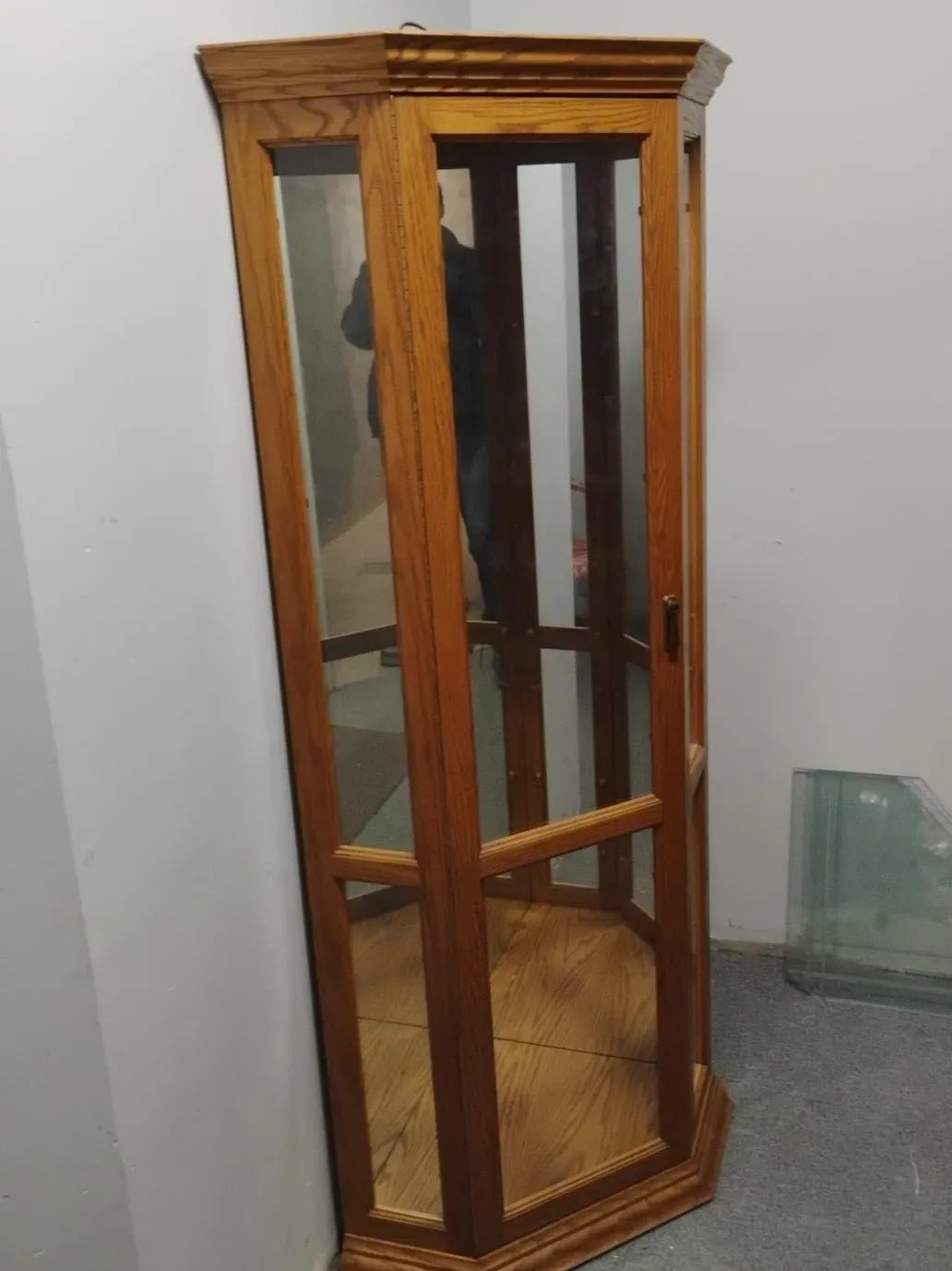 Wooden Corner Display Cabinet with Glass Doors