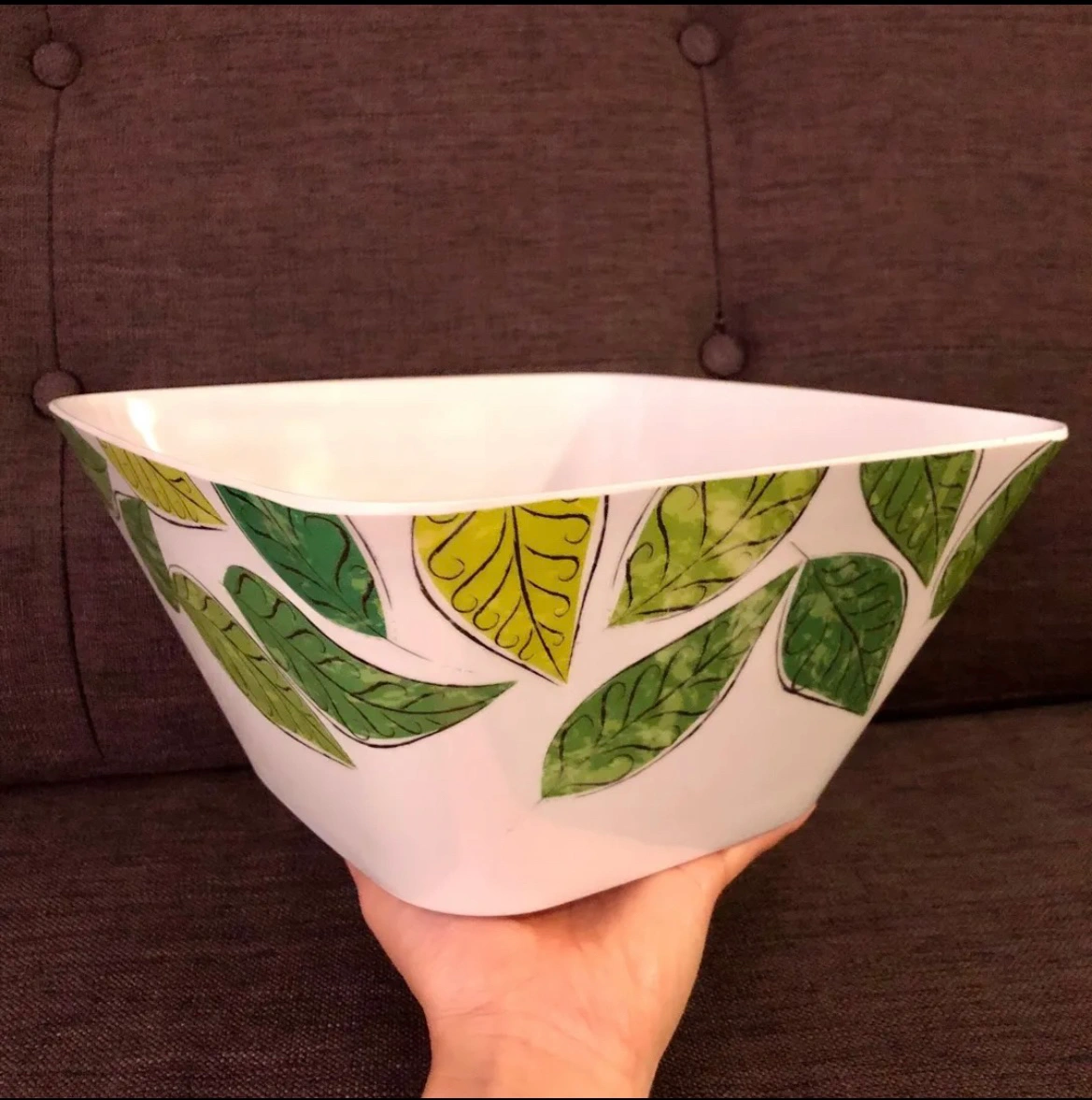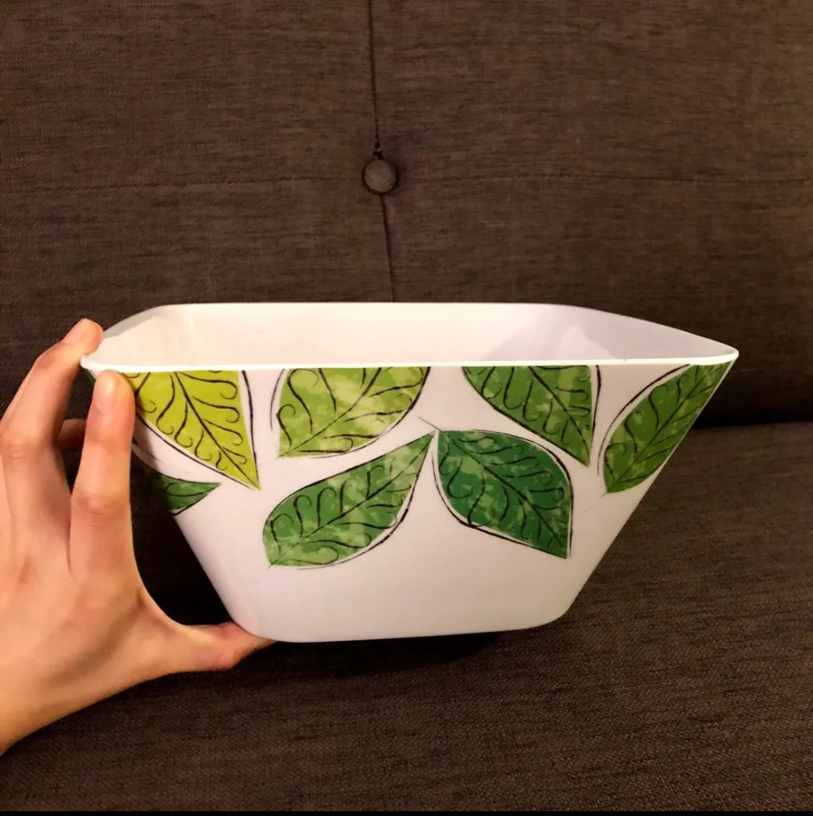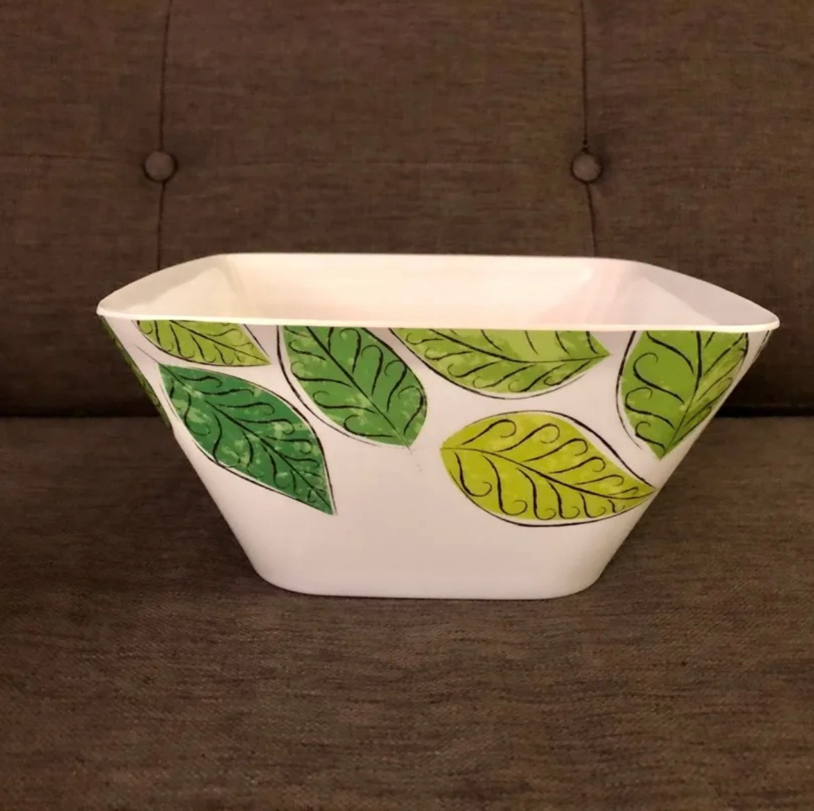 107New. Never used! Cute leaf decor around the bowl. Pretty deep so will be able to fit quite a bit!