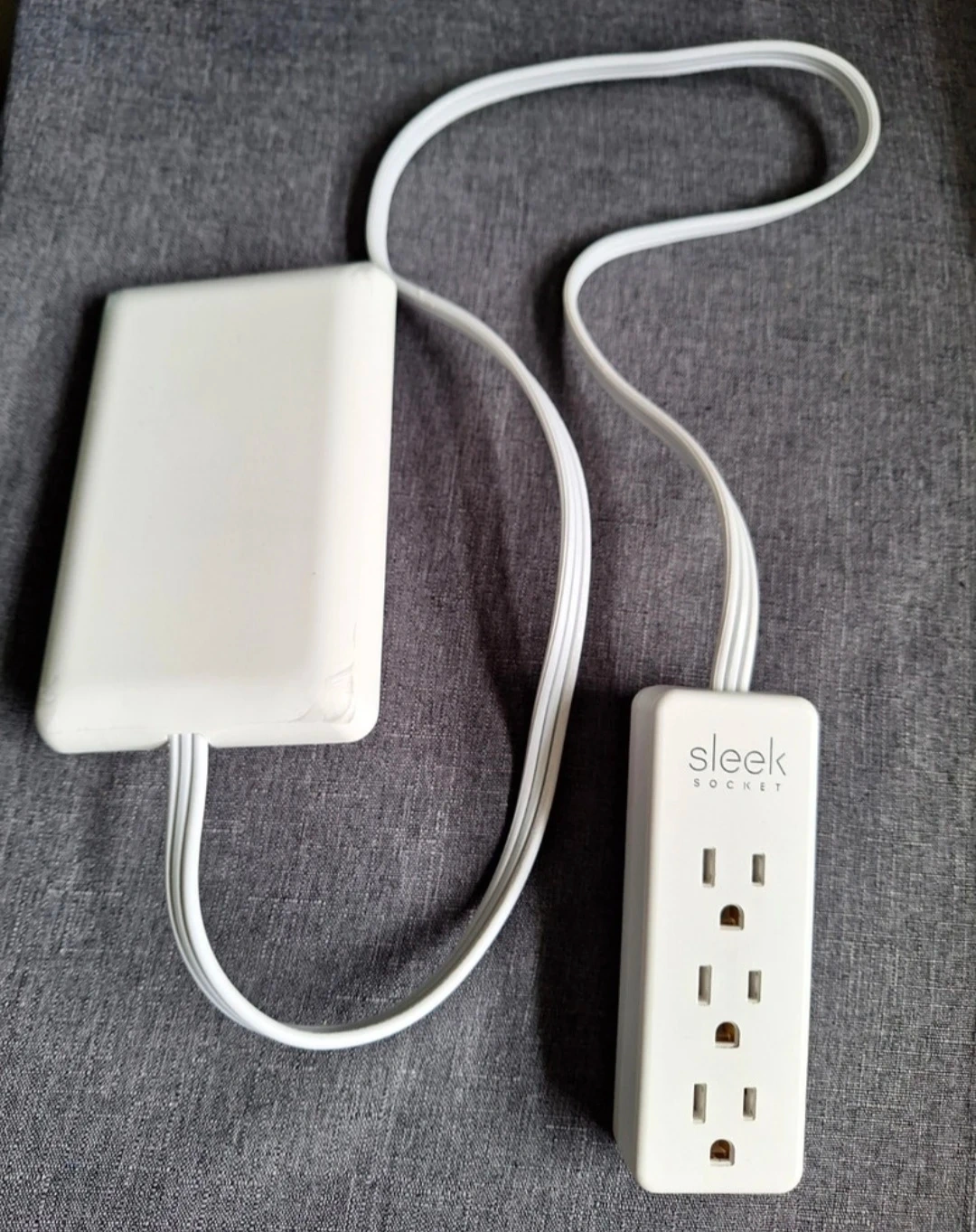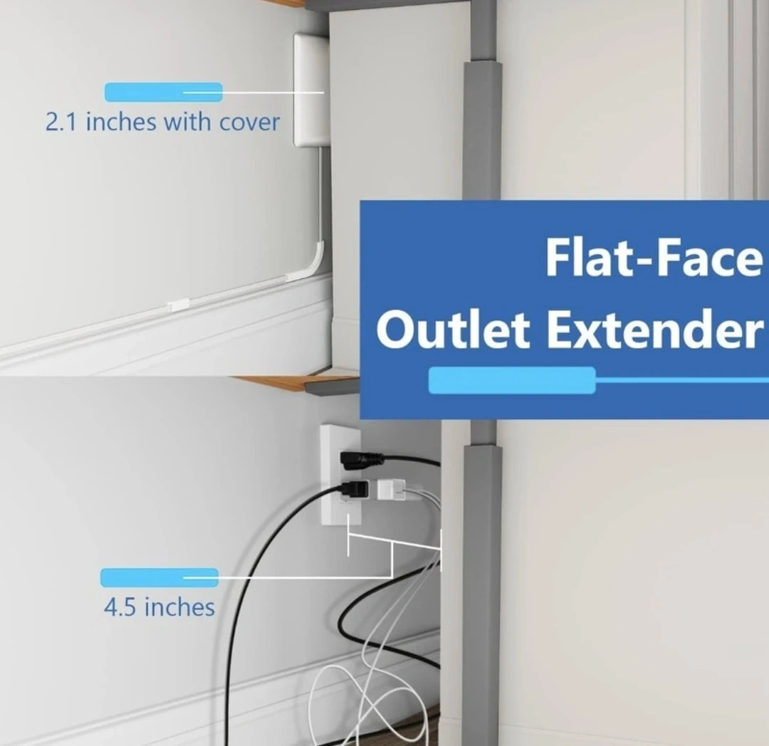 Selling a Sleek Socket flat-face outlet extender! It's ideal for any residential location and helps to keep cords tidy. It extends the outlet with a cover of 2.1 inches and a length of 4.5 inches, while only protruding 0.6 inches from the wall. This is a great solution for tight spaces behind furniture. New, still has plastic on faceplate. 3ft cord