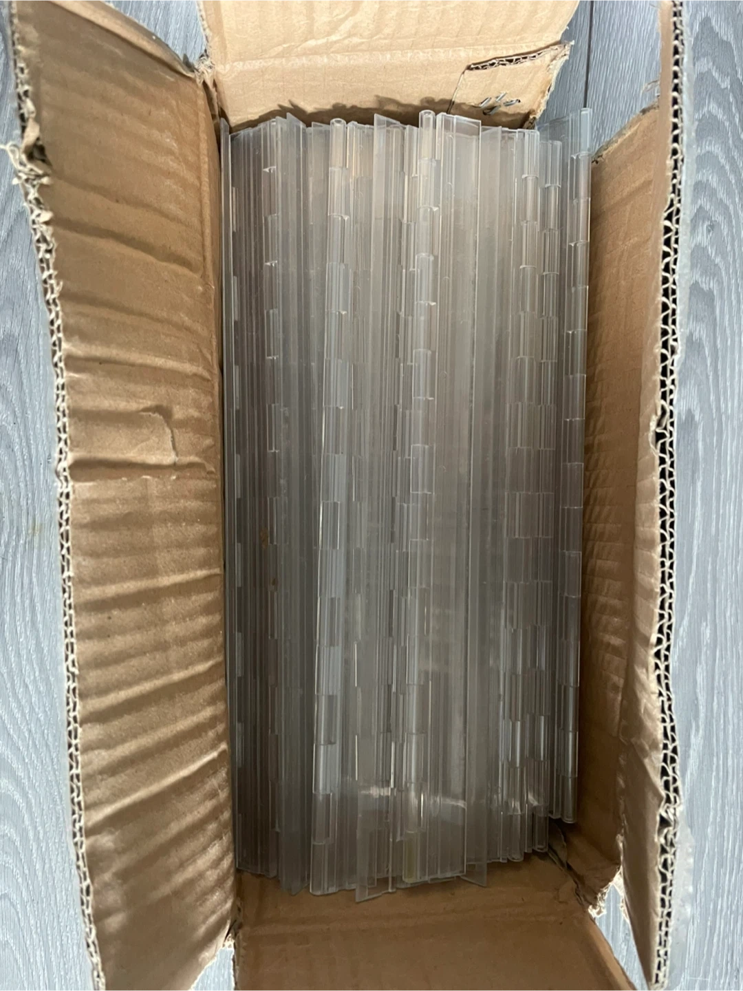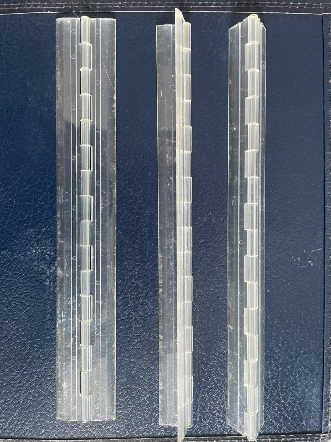 Approx. 700 total 12" clear acrylic (PETG) piano hinges