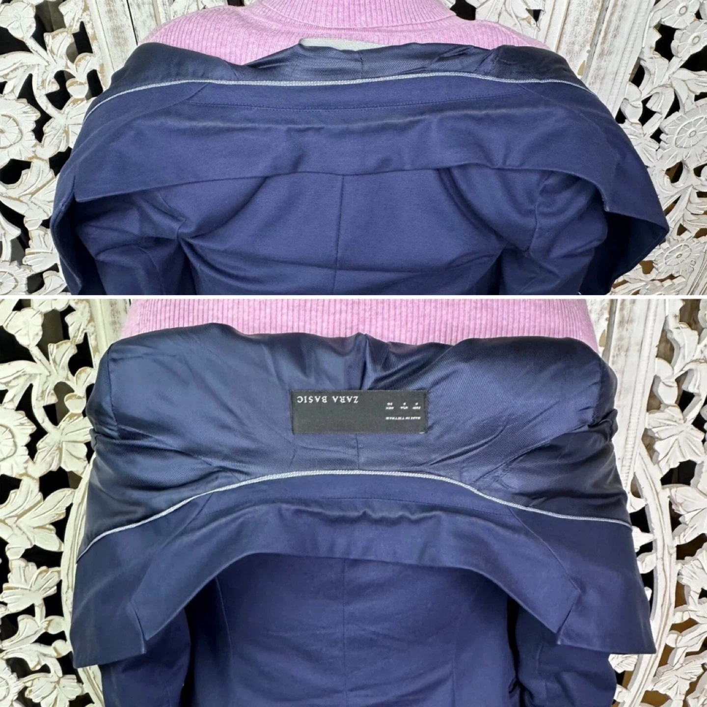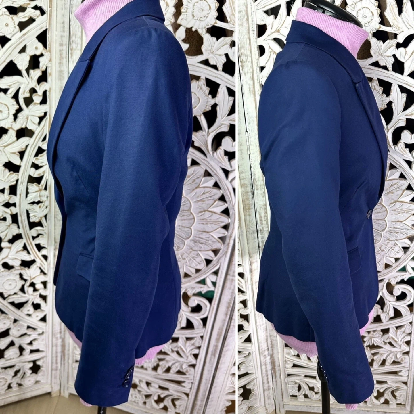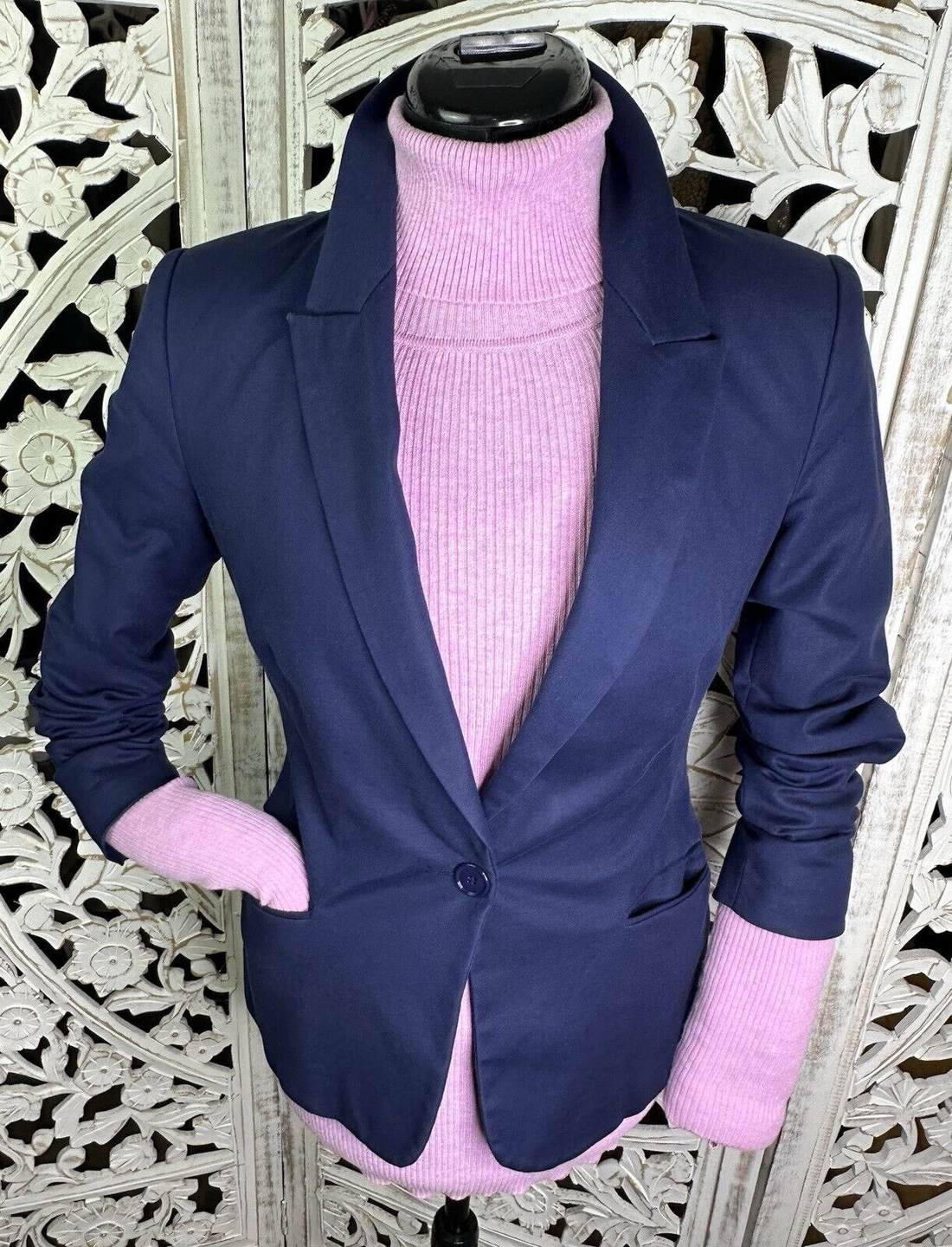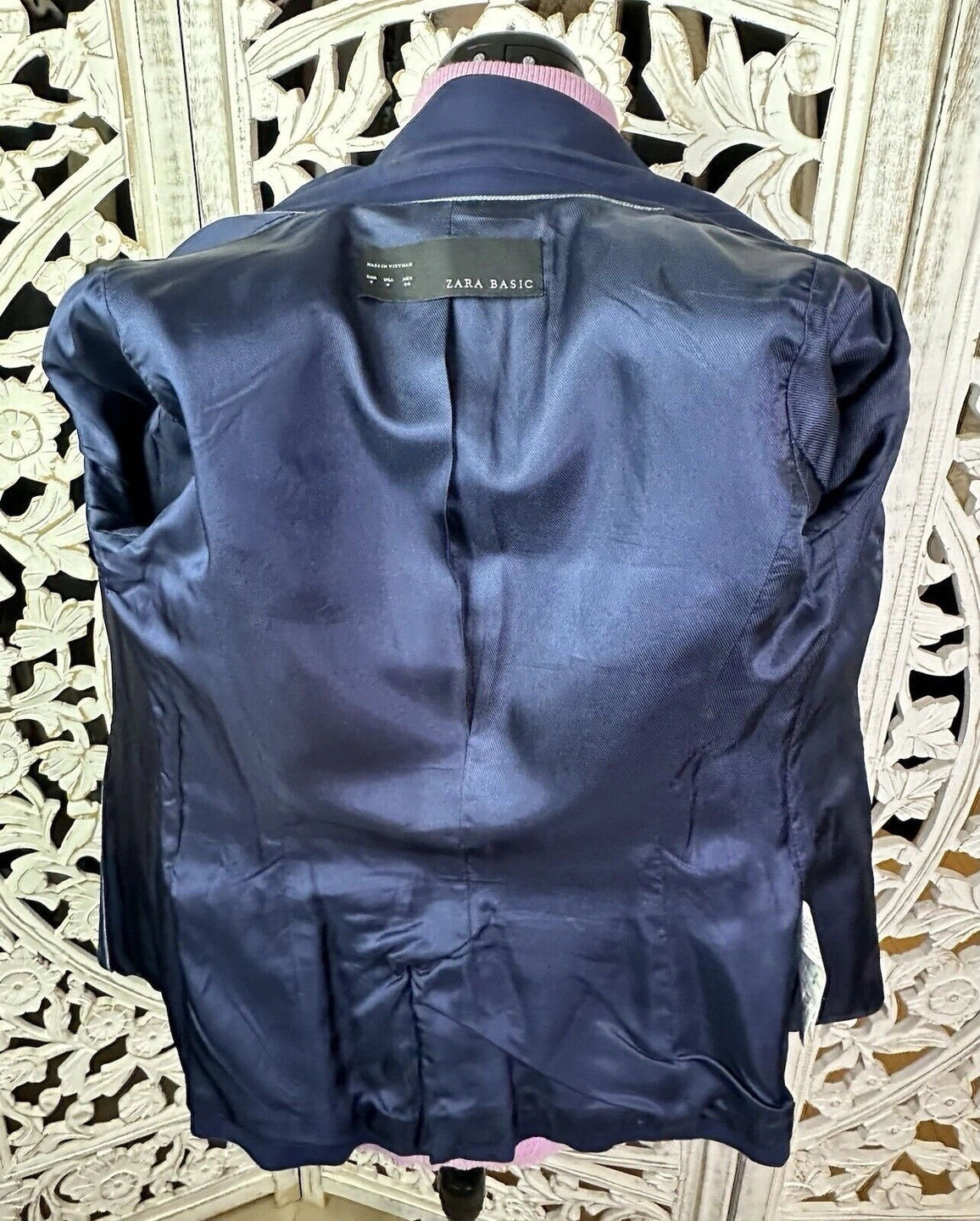 ZARA BASIC Women's Navy Blue Blazer Jacket, Size S (One-Button, Long with Three-Button Sleeves, US 2)