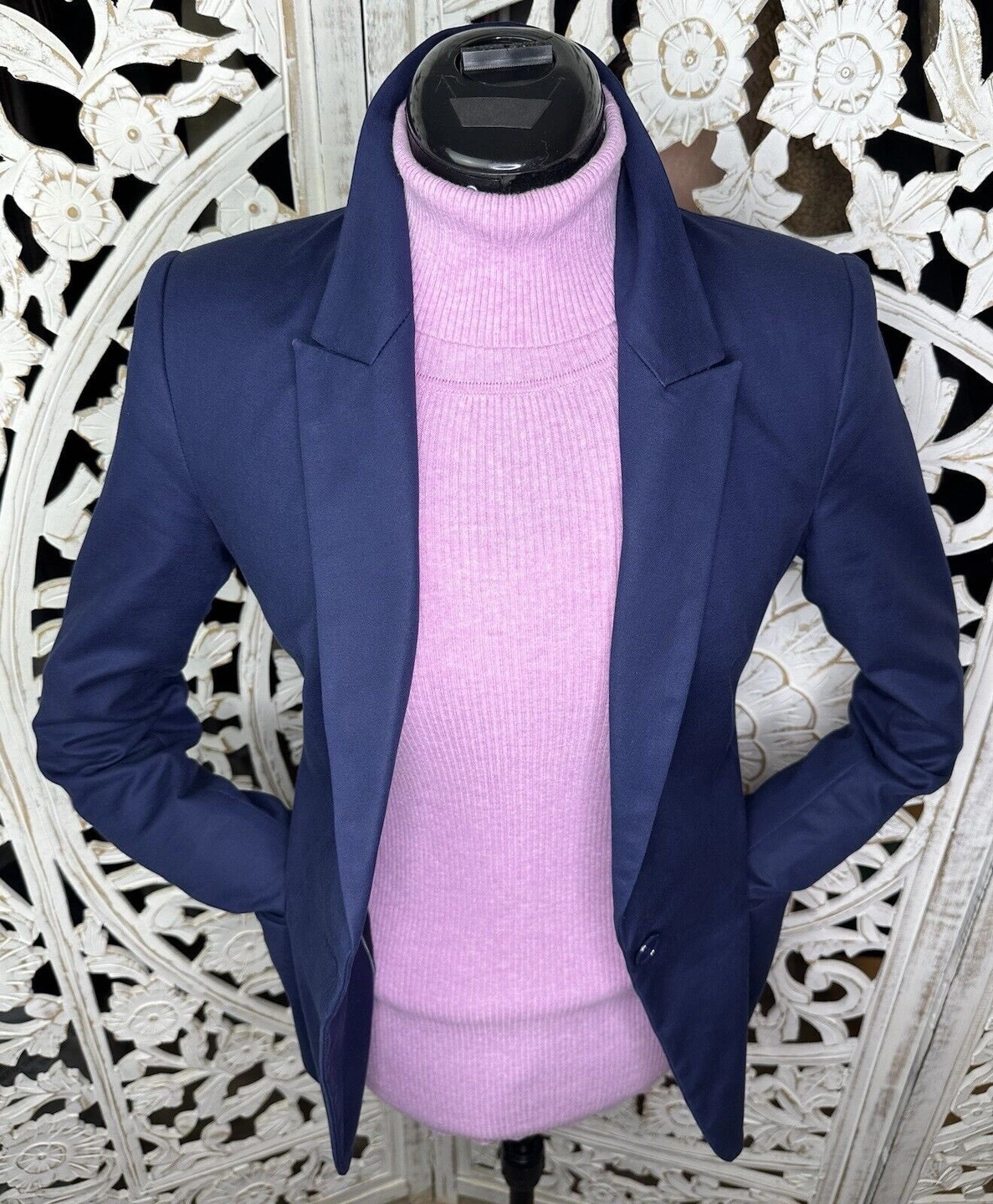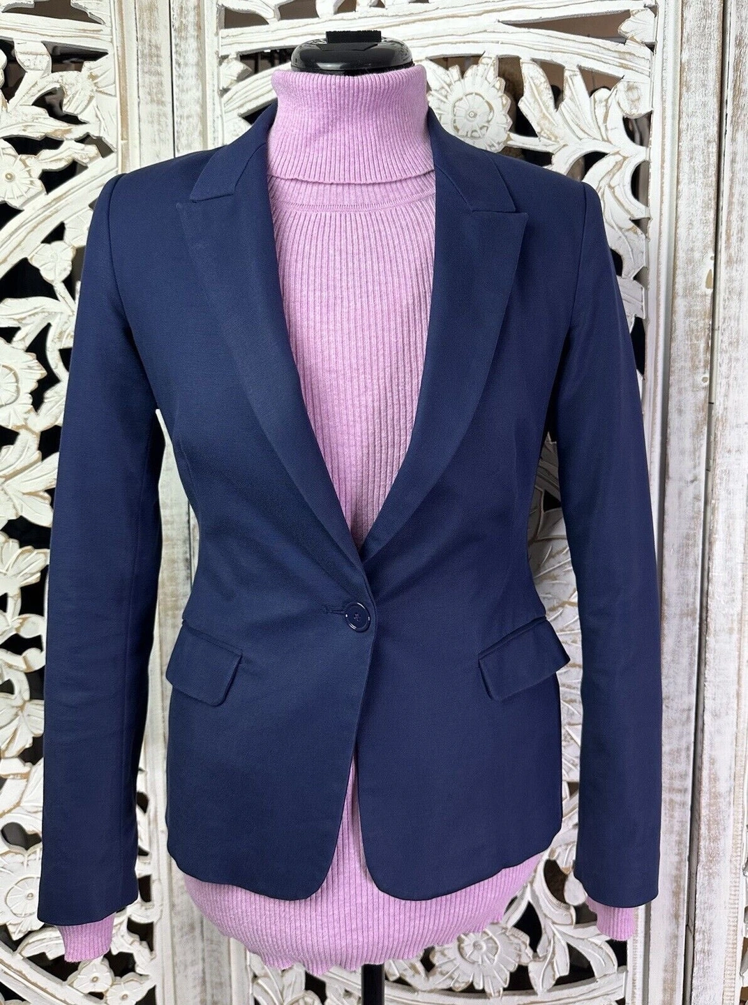 🥕 ZARA BASIC Womens Navy Blazer Jacket S One button 3 buttons