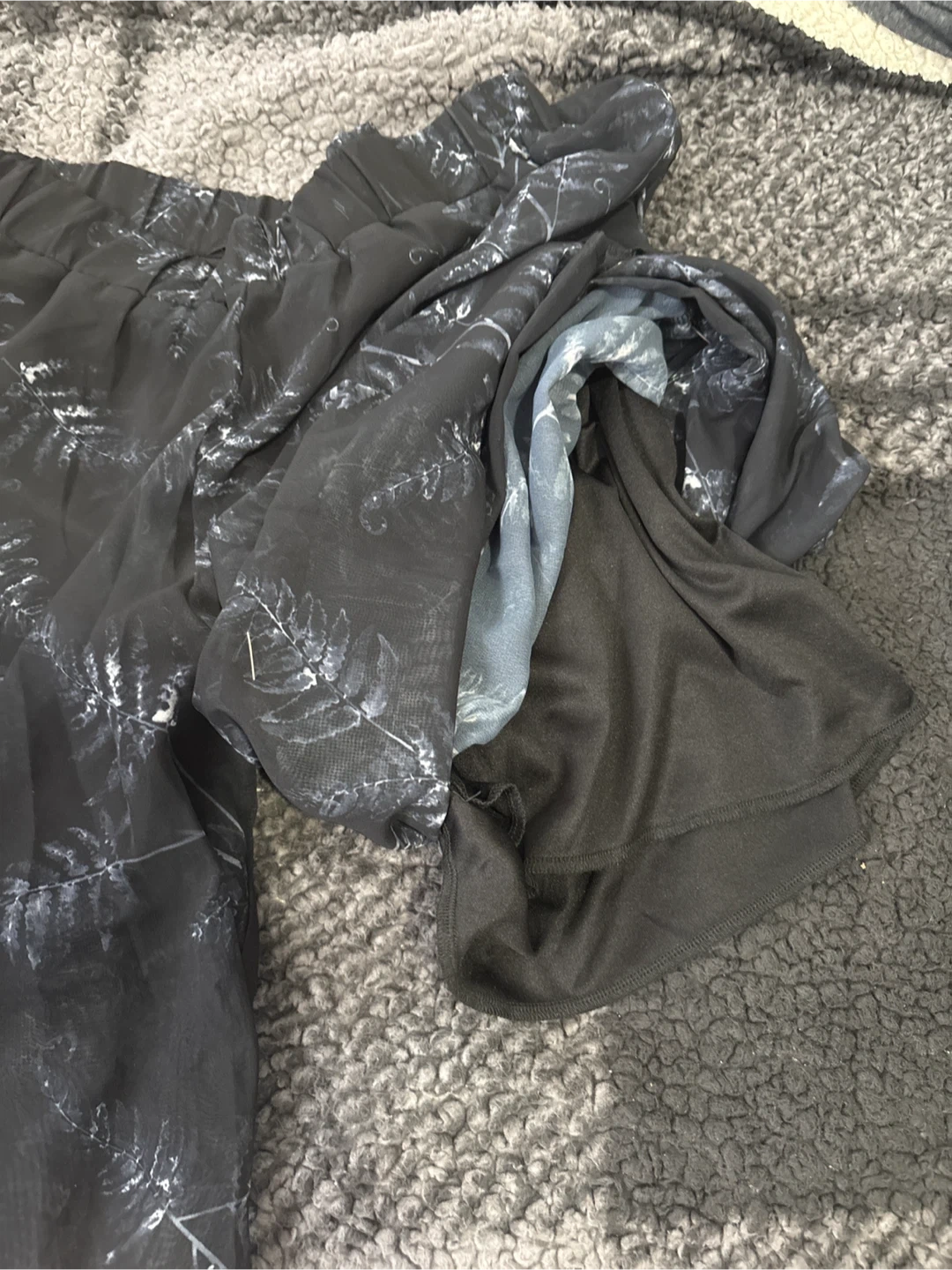 Very lightweight, flowy pants with blue fern print with built-in shorts. Pant legs have slits. Great for hot days, in great condition