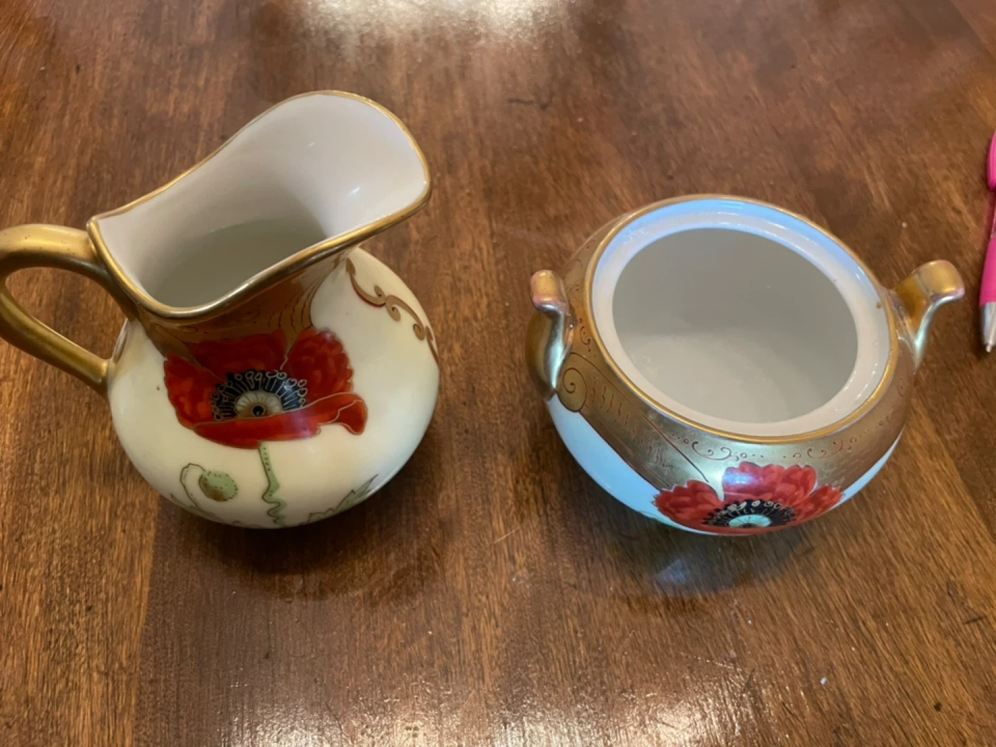 Handpainted Austrian Porcelain Sugar Bowl with Poppies