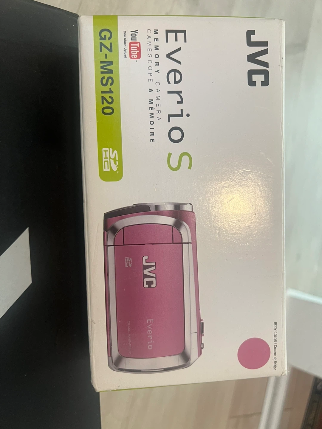 This JVC Everio S memory camera is in a pink colour and comes with its original box. It's a compact device for capturing your memories. Includes charger and accessories.