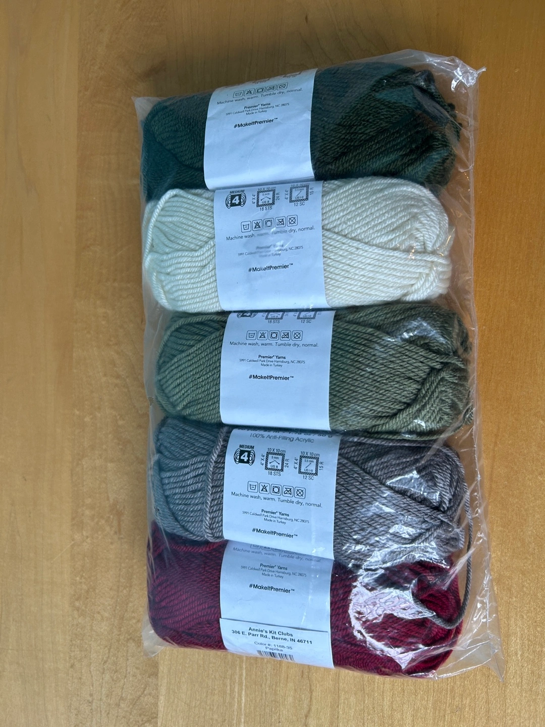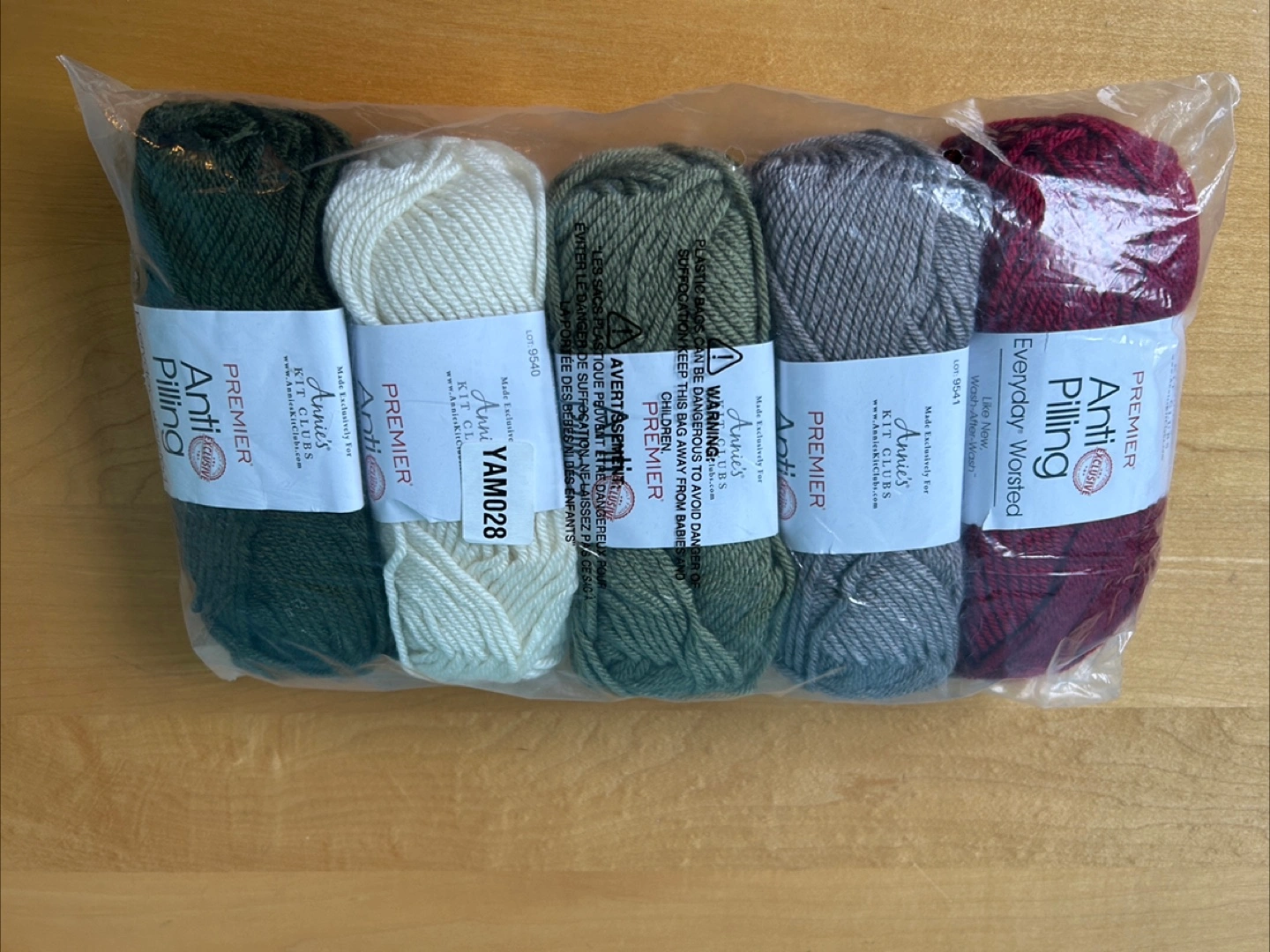 Made exclusively for Annie’s Kit Clubs. Here's a handy 5-pack of Premier Yarns Anti-Pilling Everyday Worsted yarn! Perfect for your next knitting or crochet project. The pack includes a variety of colours to get you started. Maroon, gray, sage, ivory, forest green. Meet in Richmond or downtown Van at Hotel Van