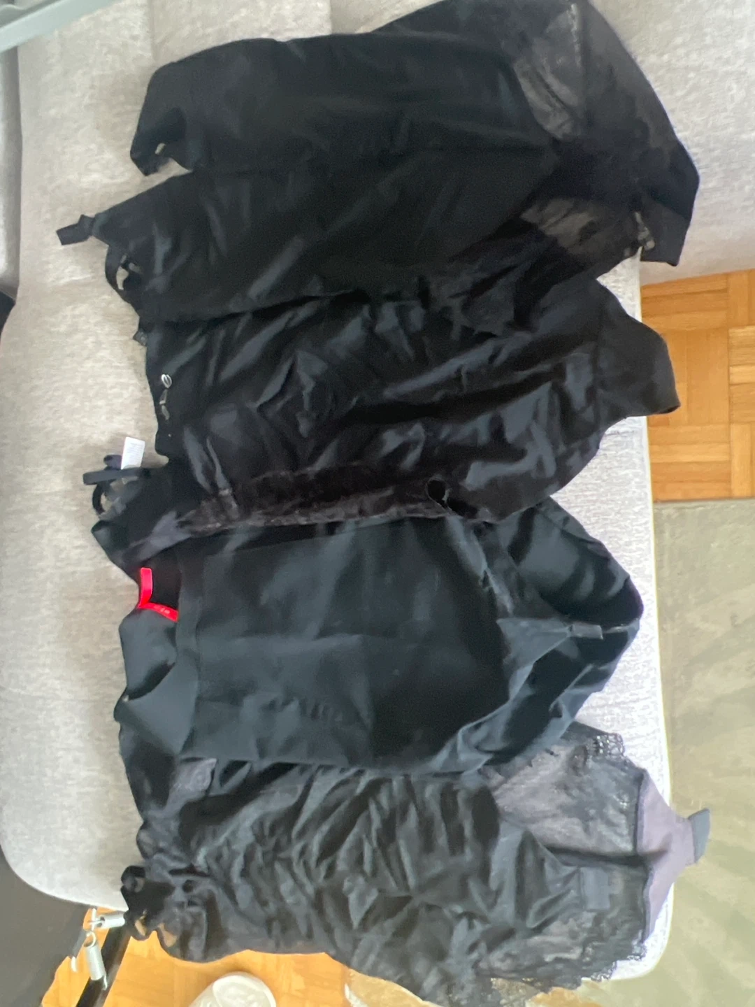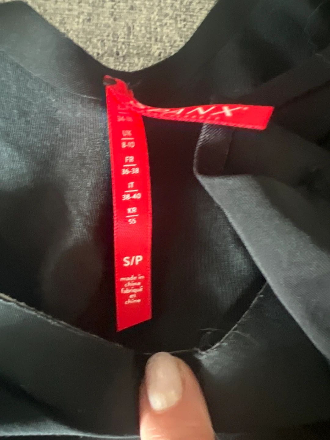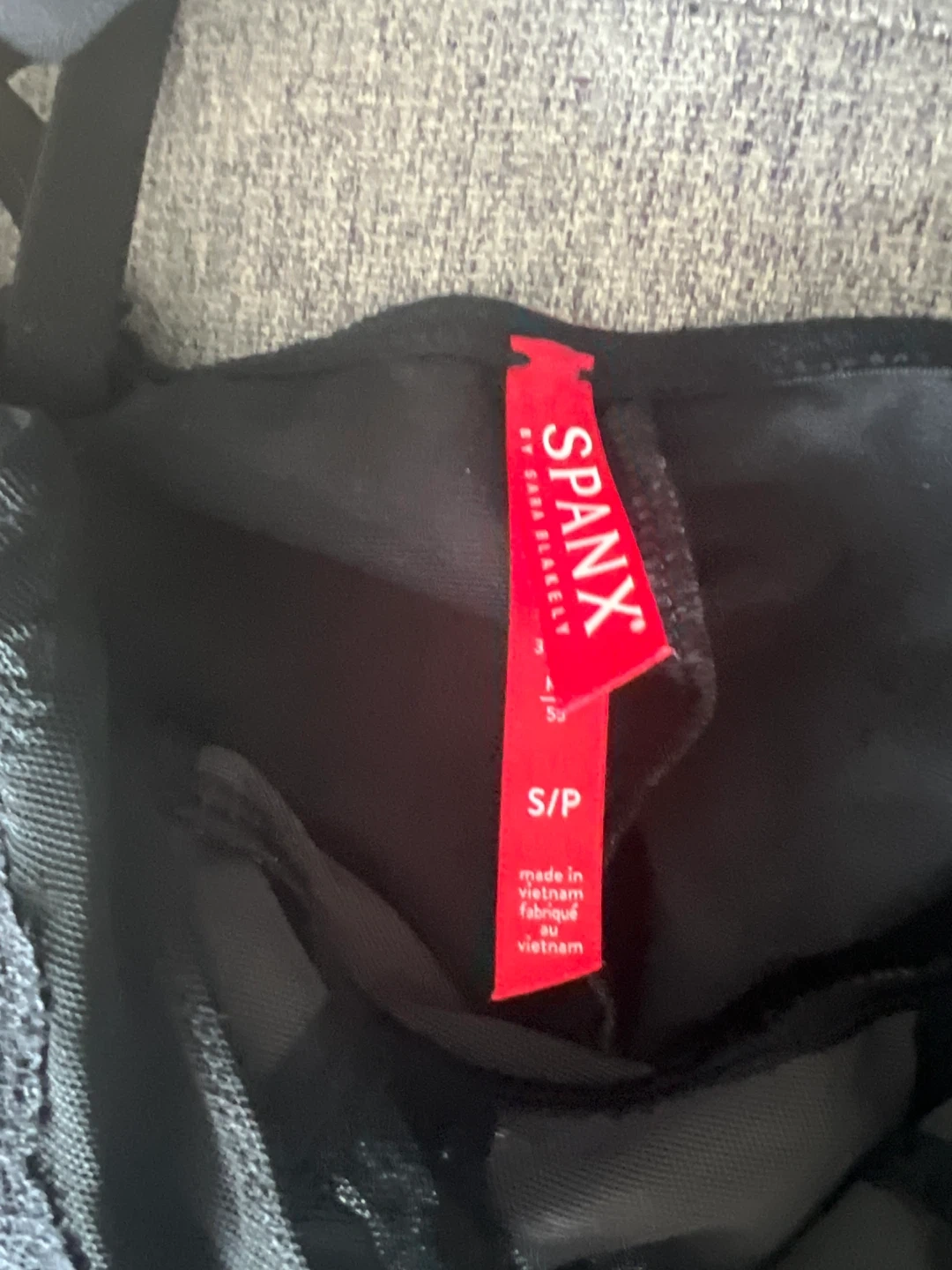Black shapewear from Spanx by Sara Blakely. This is a size S/P with a blend of nylon and elastane. It's designed to provide smoothing and shaping. Useful for creating a sleek silhouette under fitted clothing. (4) for $10