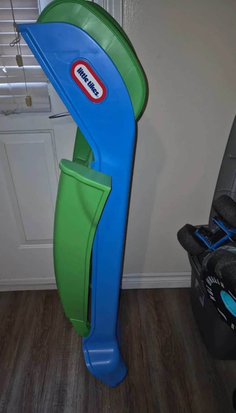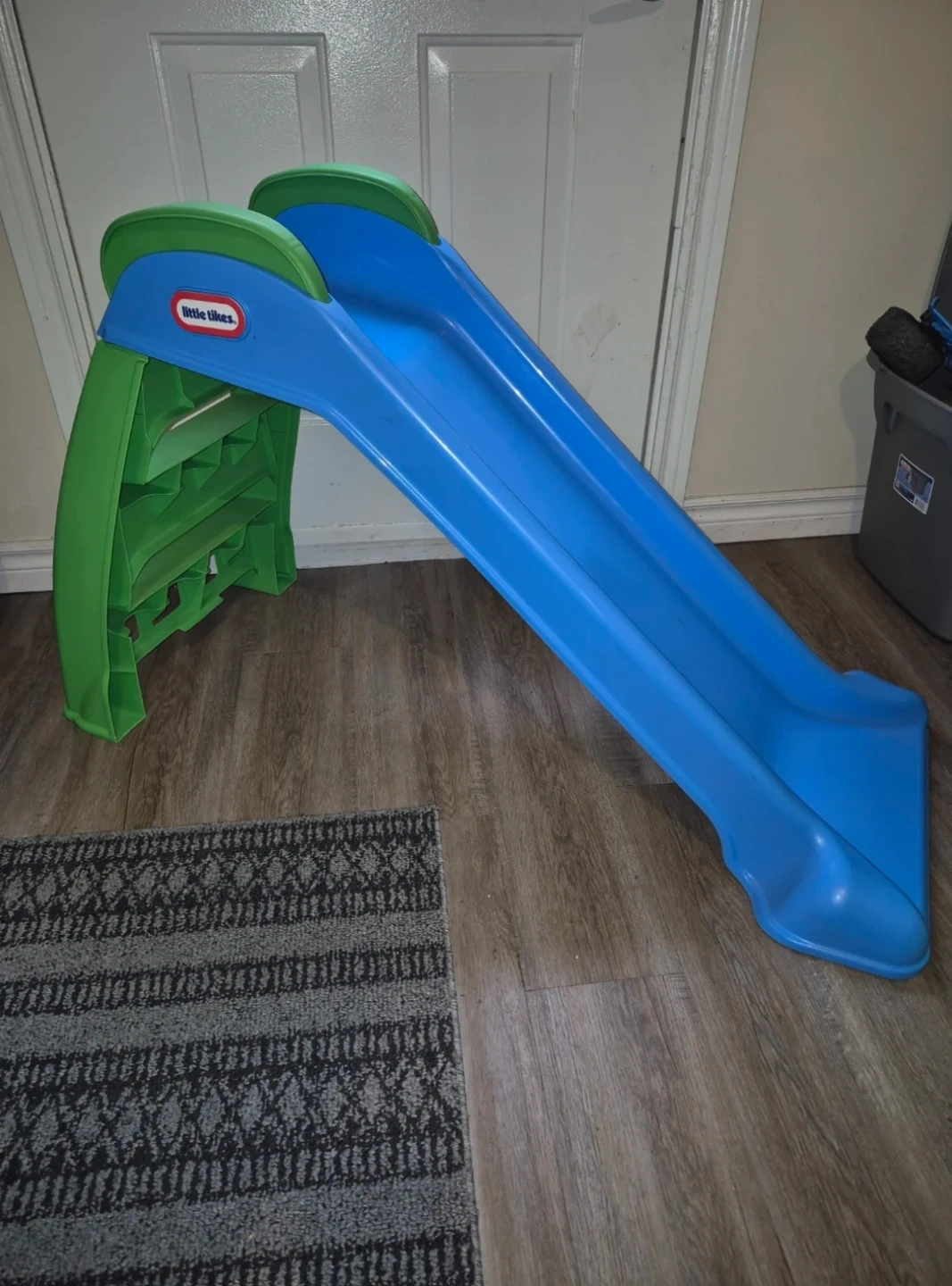 This Little Tikes slide is perfect for indoor or outdoor fun. It's foldable for easy storage. Great for toddlers and young children to enjoy active play! This has only been used as an indoor toy very clean and new like
