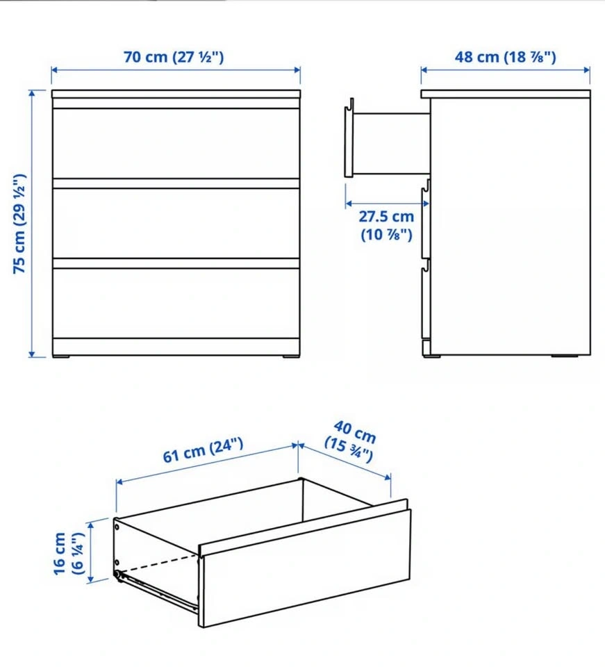 IKEA 3-drawer chest, white. As good as new, no damages or scratches, used with extreme care. From a smoke-free, pet-free home. Cash only. Pickup only.