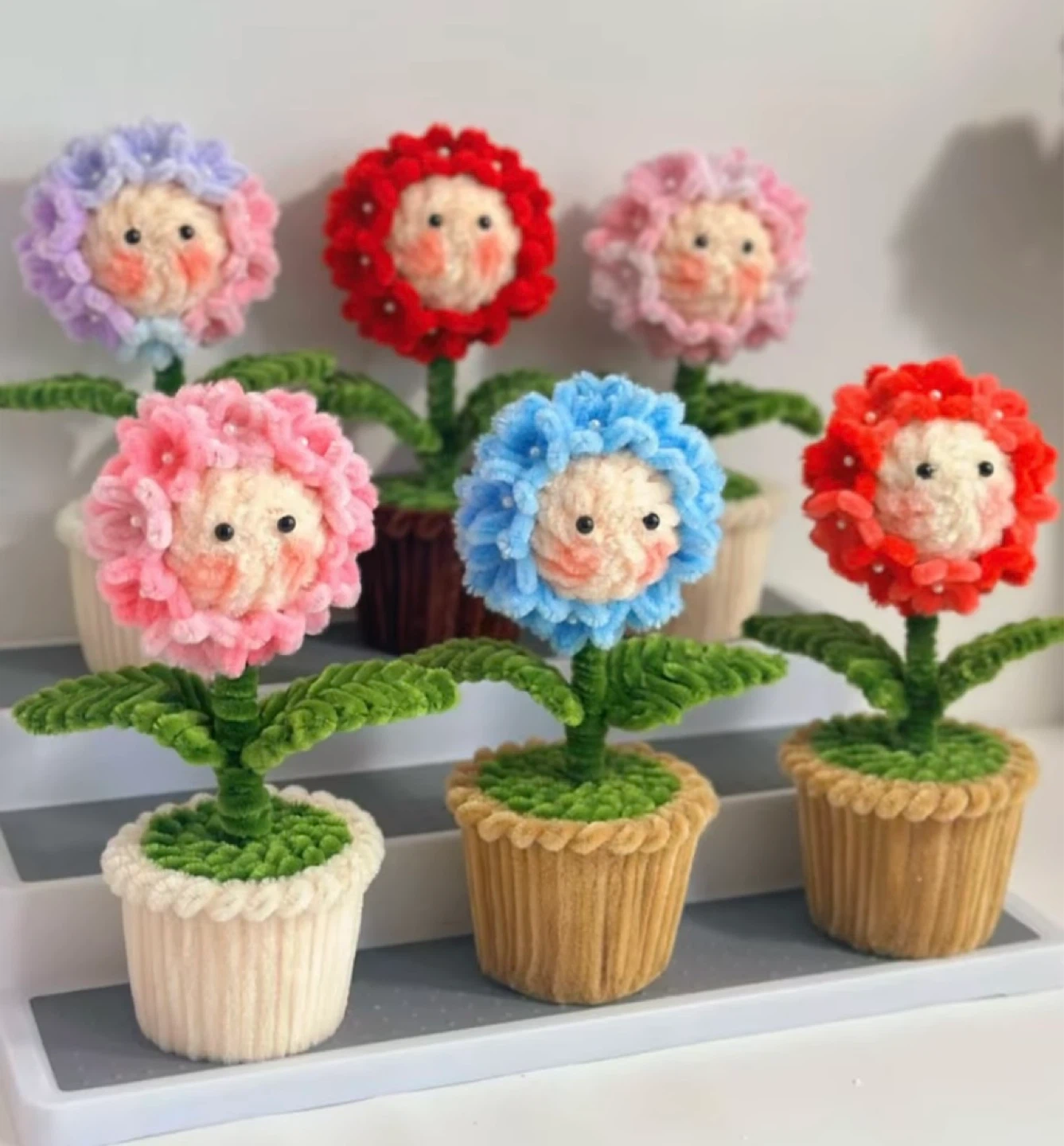 These adorable pipe cleaners flowers come in colourful pots. They're a cute way to add some handmade charm to any space. Perfect for desks or shelves, they're sure to bring a smile!