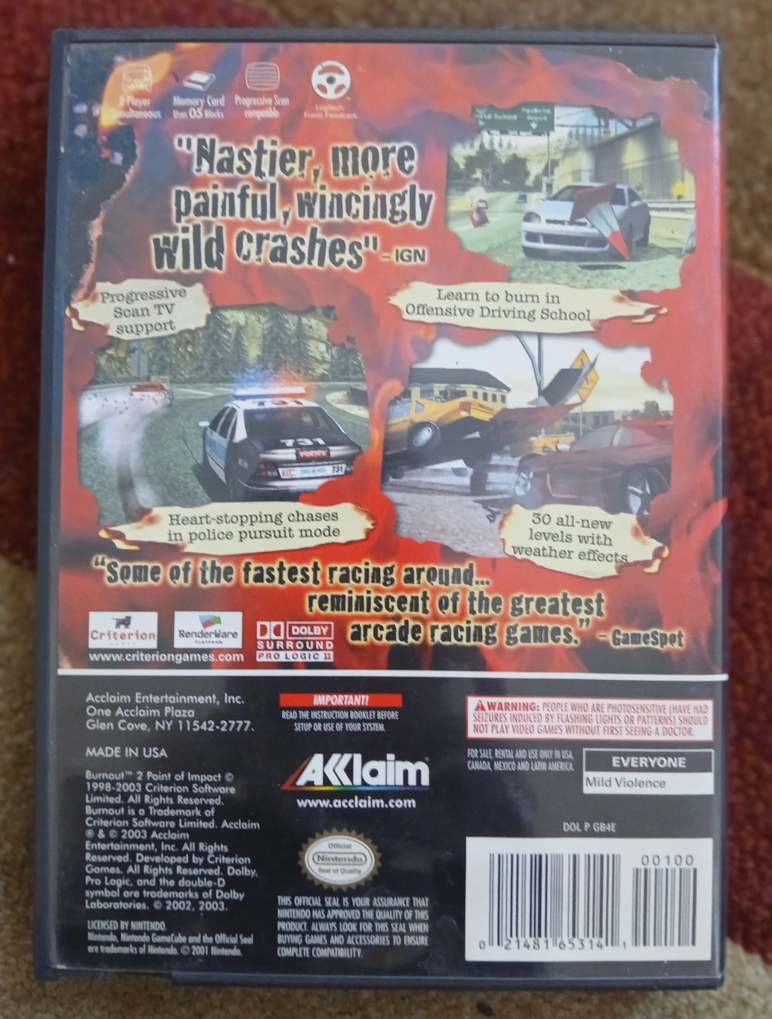 This is the Burnout 2: Point of Impact video game for the Nintendo GameCube.