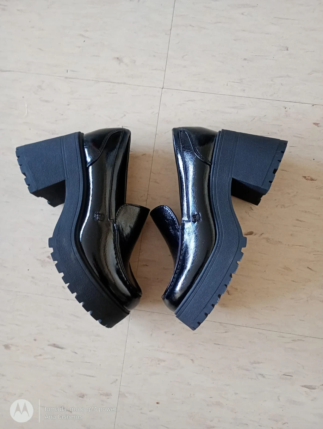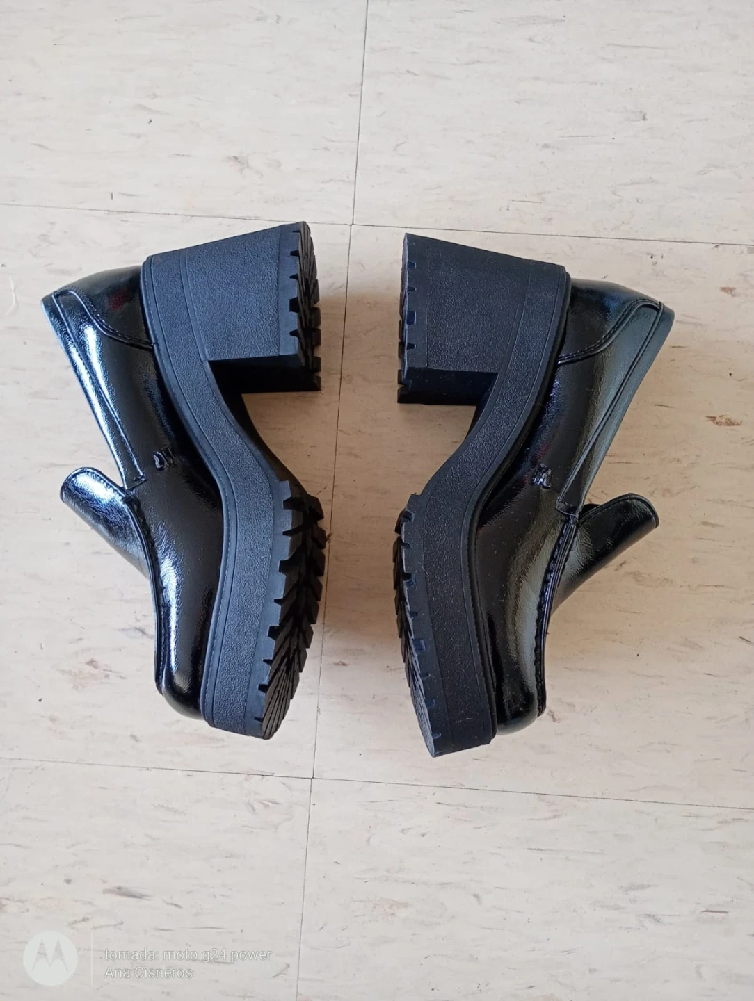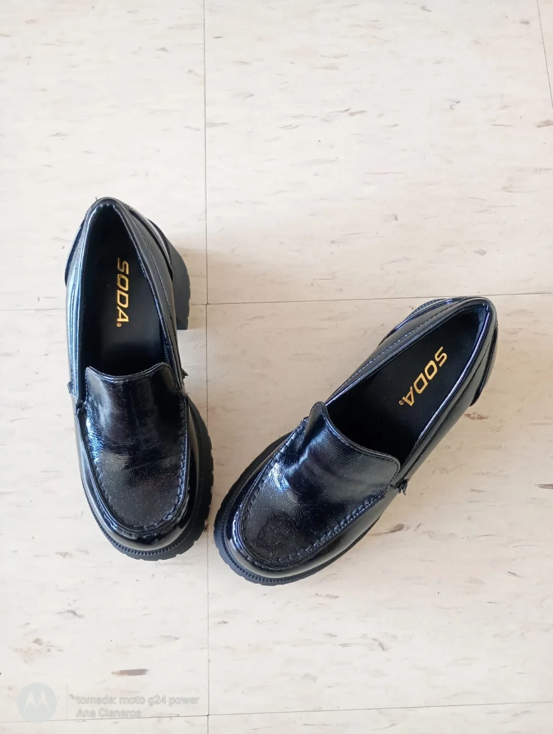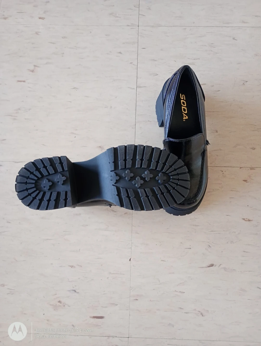 These Soda loafers feature a shiny black patent finish and a chunky platform heel. They've got a lug sole for extra grip and a stylish loafer design. These shoes are great for adding some edgy flair to your outfits!