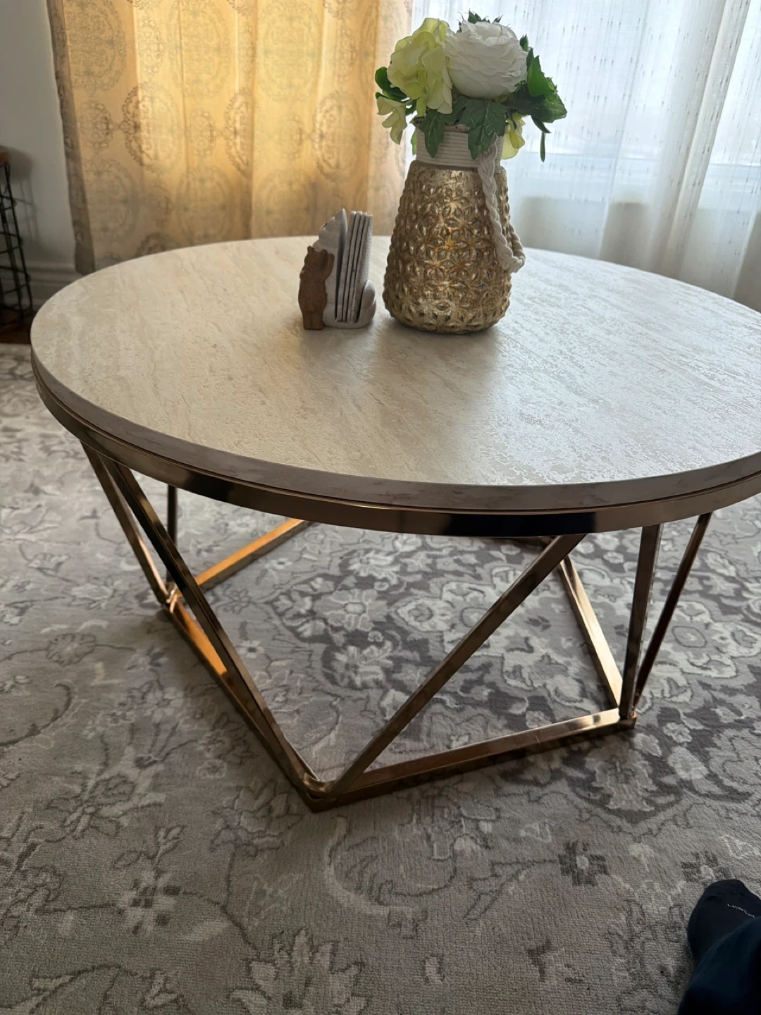 Oval Coffee Table with Marble Top and Gold Base