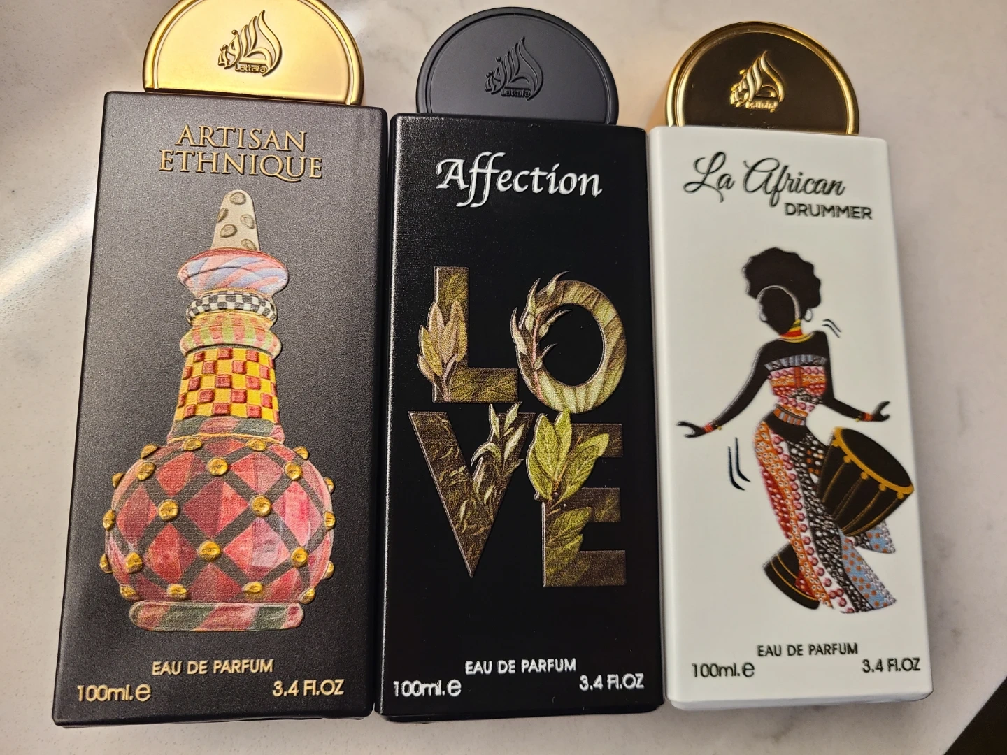 Three Lattafa Eau de Parfum bottles. 100ML each bottle.