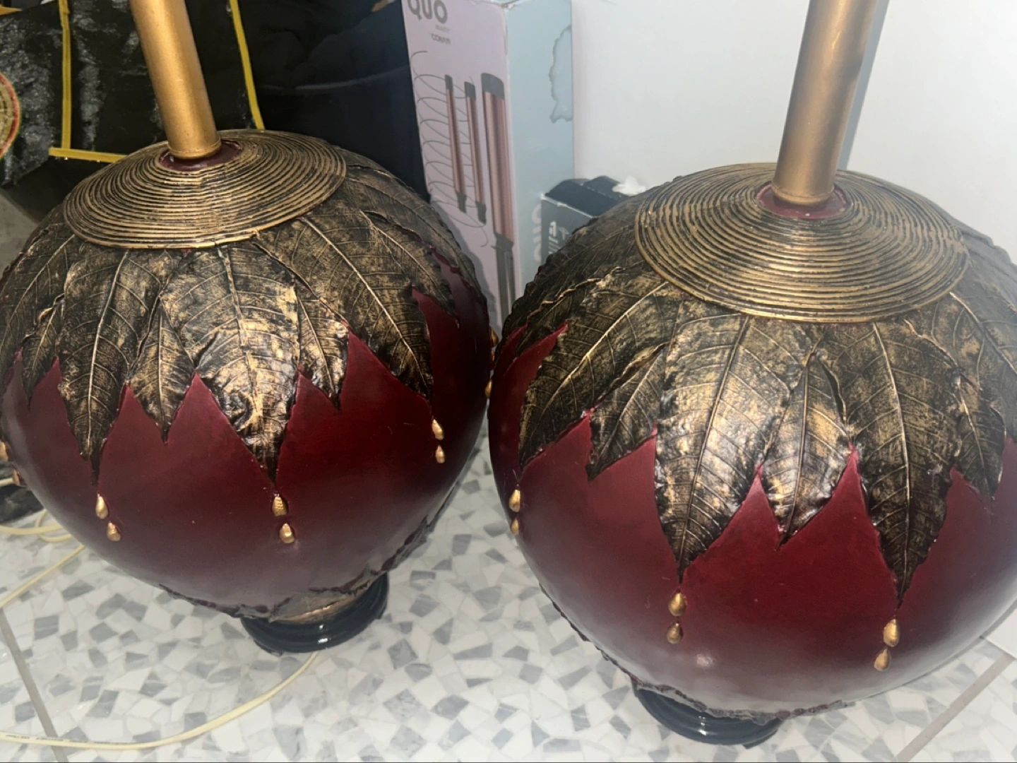 Buy & SellPair of Ornate Table LampsPair of Ornate Table Lamps$75Matching table lamps. Dark red spherical bases. Gold accents and leaf detailing. Elegant design. Includes cords and bulbs.WHERE TO MEETCheck LocationView MapSELLERSabrinaHill Park100 reviews0 chats·0 favorites·17 viewsSEND CHAT TO SELLERHi Sabrina! I’m interested in your listing.Hi Sabrina! I’m interested in your listing.Get the Karrot app to chatSign In to chat