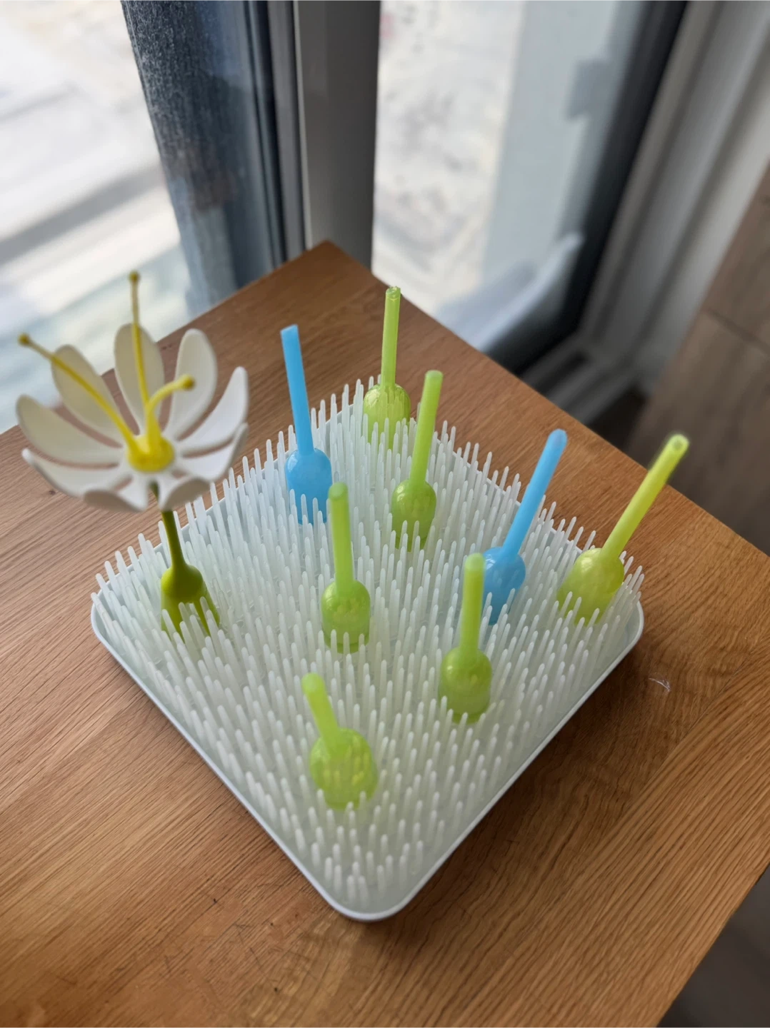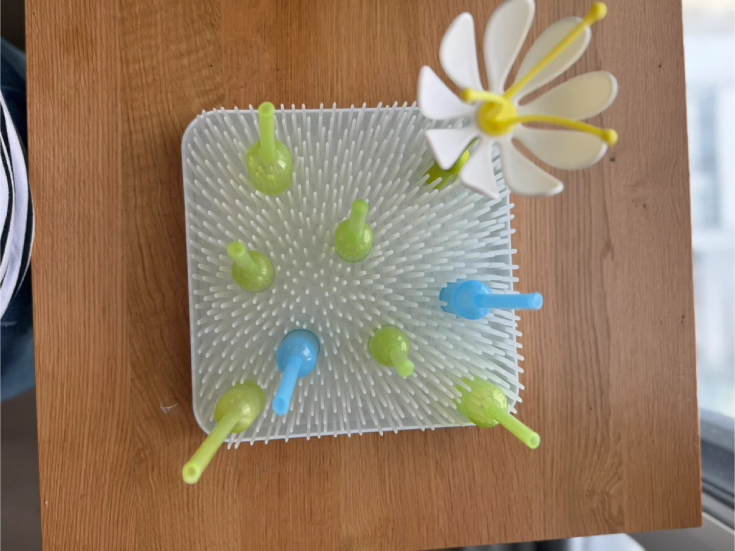 Keep your baby bottles and accessories organized with this Boon Grass countertop drying rack! Its flexible blades hold items of all shapes and sizes, and the stylish design looks great in any kitchen.
