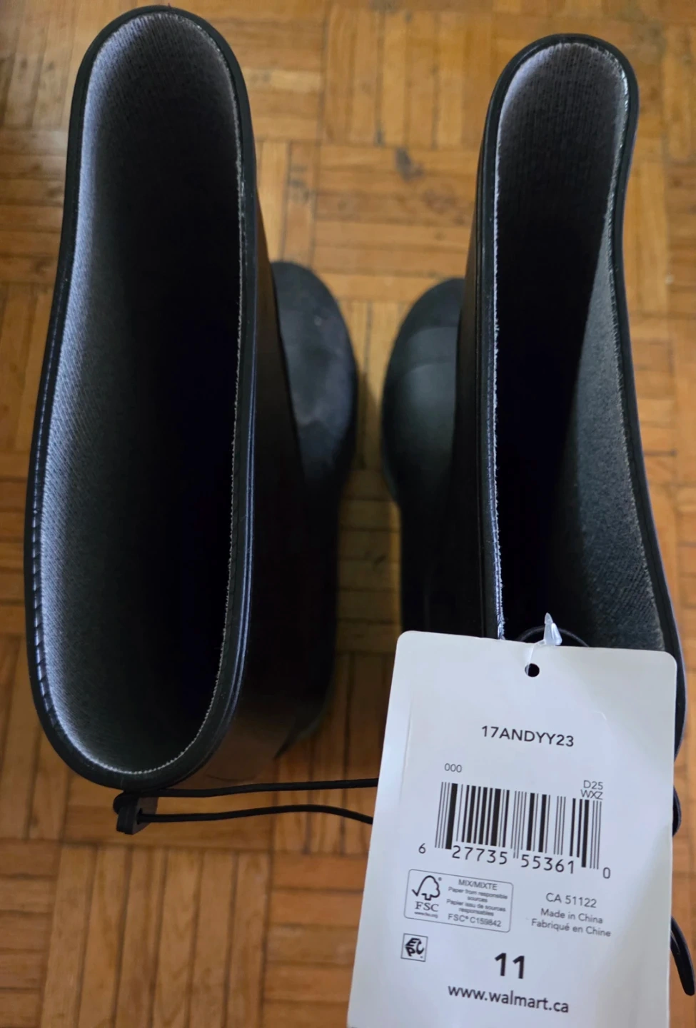 Brand new Ozark Trail men's waterproof rain boots. Black colour, size 11. These boots are made for outdoor equipment use.