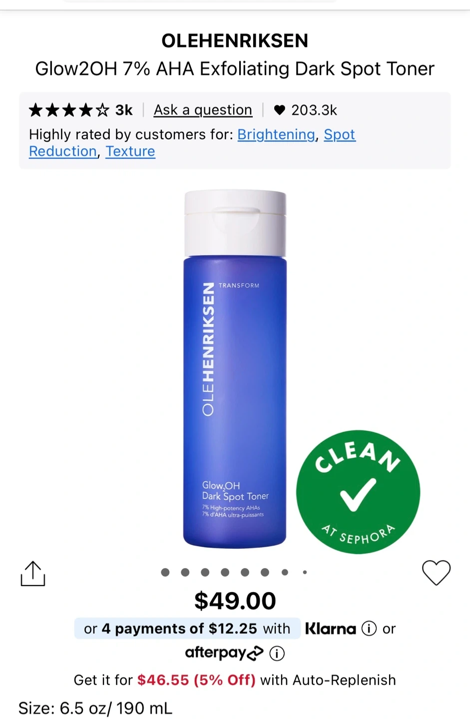 65ml (2.2 fl oz) bottle of Glow2OH Dark Spot Toner.