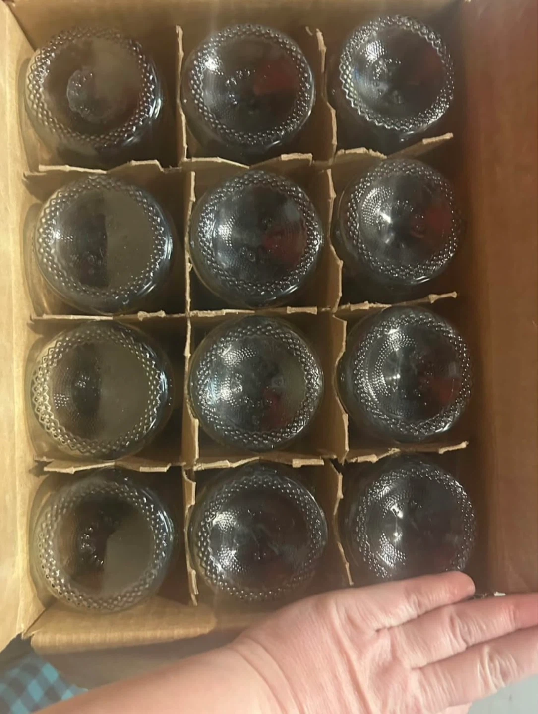 Hi there I have in boxes that were cleaned and sanitized before storing, no longer need them 30- 750ml clear wine bottles asking 30 for all of them.