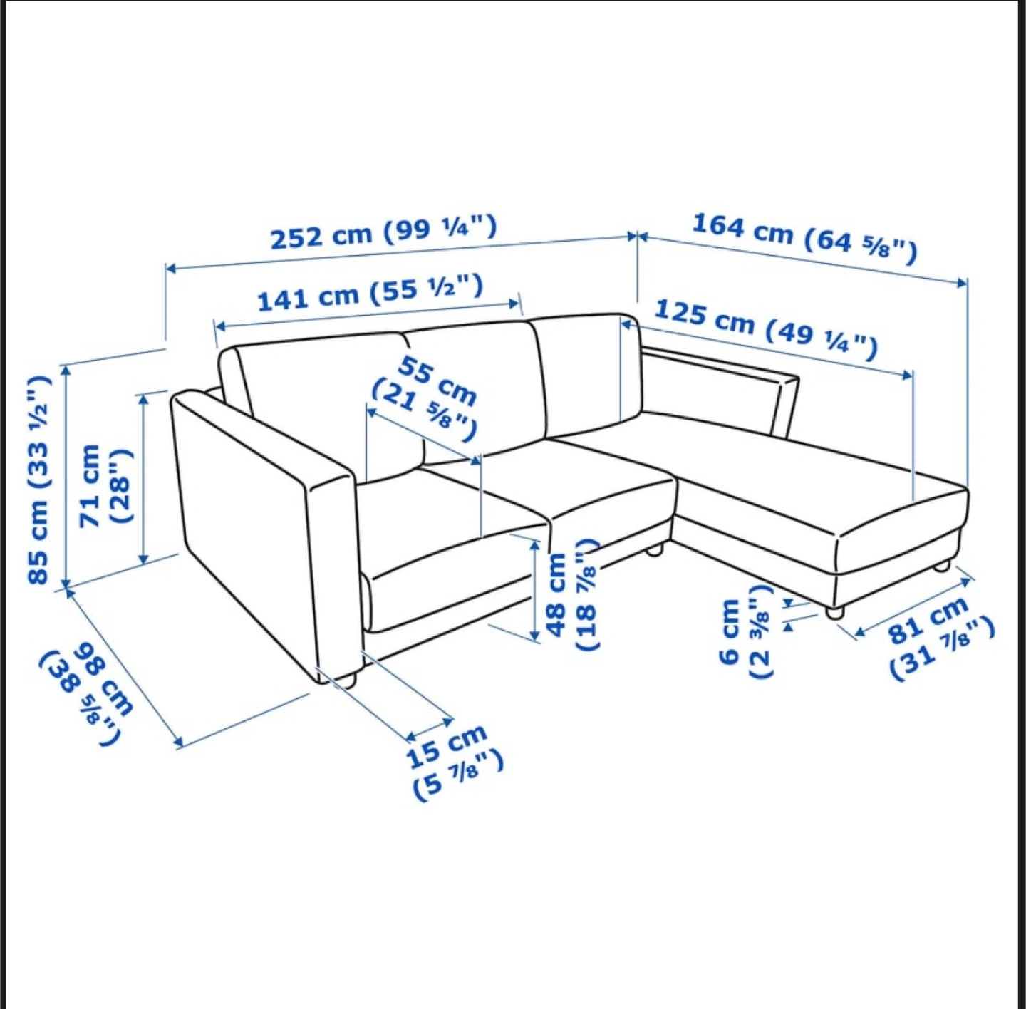 The sofa's sections can be combined in different ways to get a size and shape that suits you. If you ever need a larger sofa, you can always add a section or two. You can place the chaise section to the left or right of the sofa, and switch whenever you like.