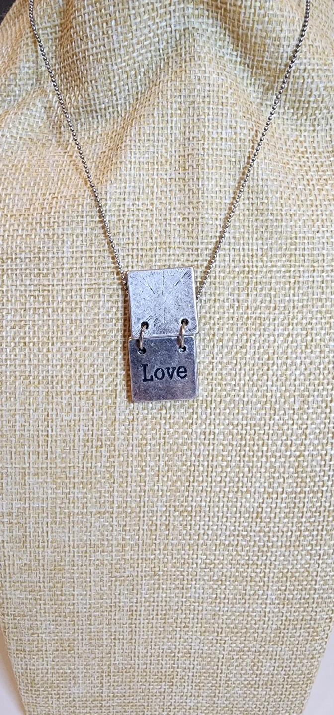 Selling a unique and sentimental silver-tone necklace! The square pendant on this charming piece is a "flip book" style locket that, when flipped through, reveals the sweet message "i love you," one word per page.