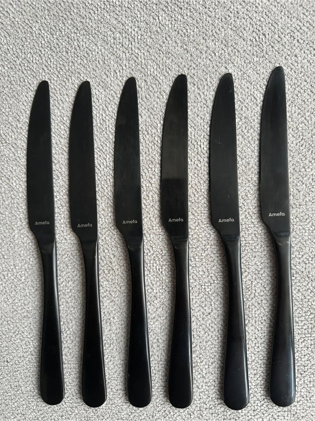 Set of six black butter knives from Amefa. Made of stainless steel. Great for everyday use!