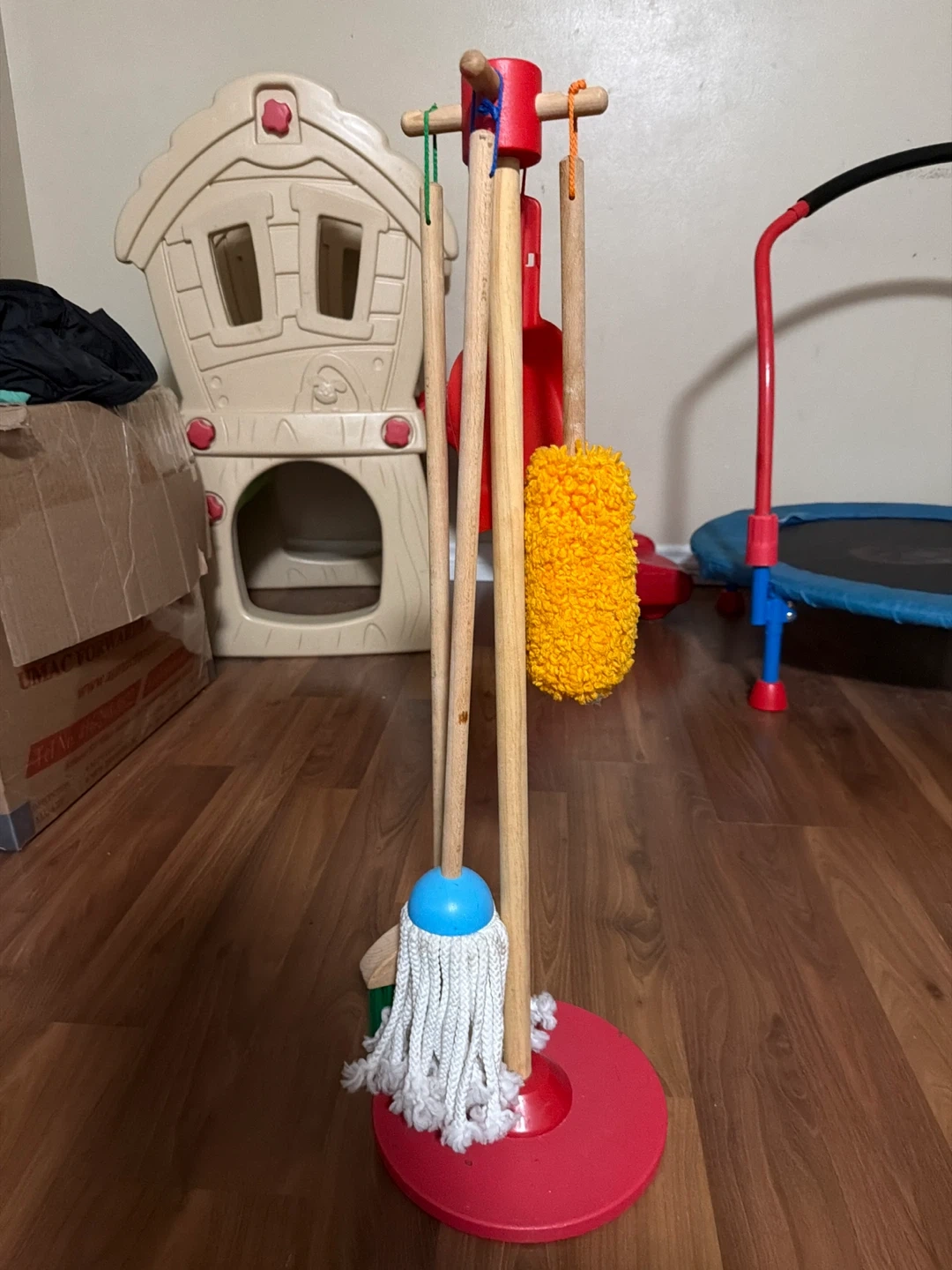 Wooden Toy Cleaning Set with Mop, Broom, Dustpan, and Duster