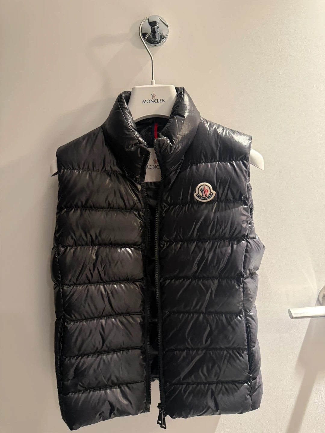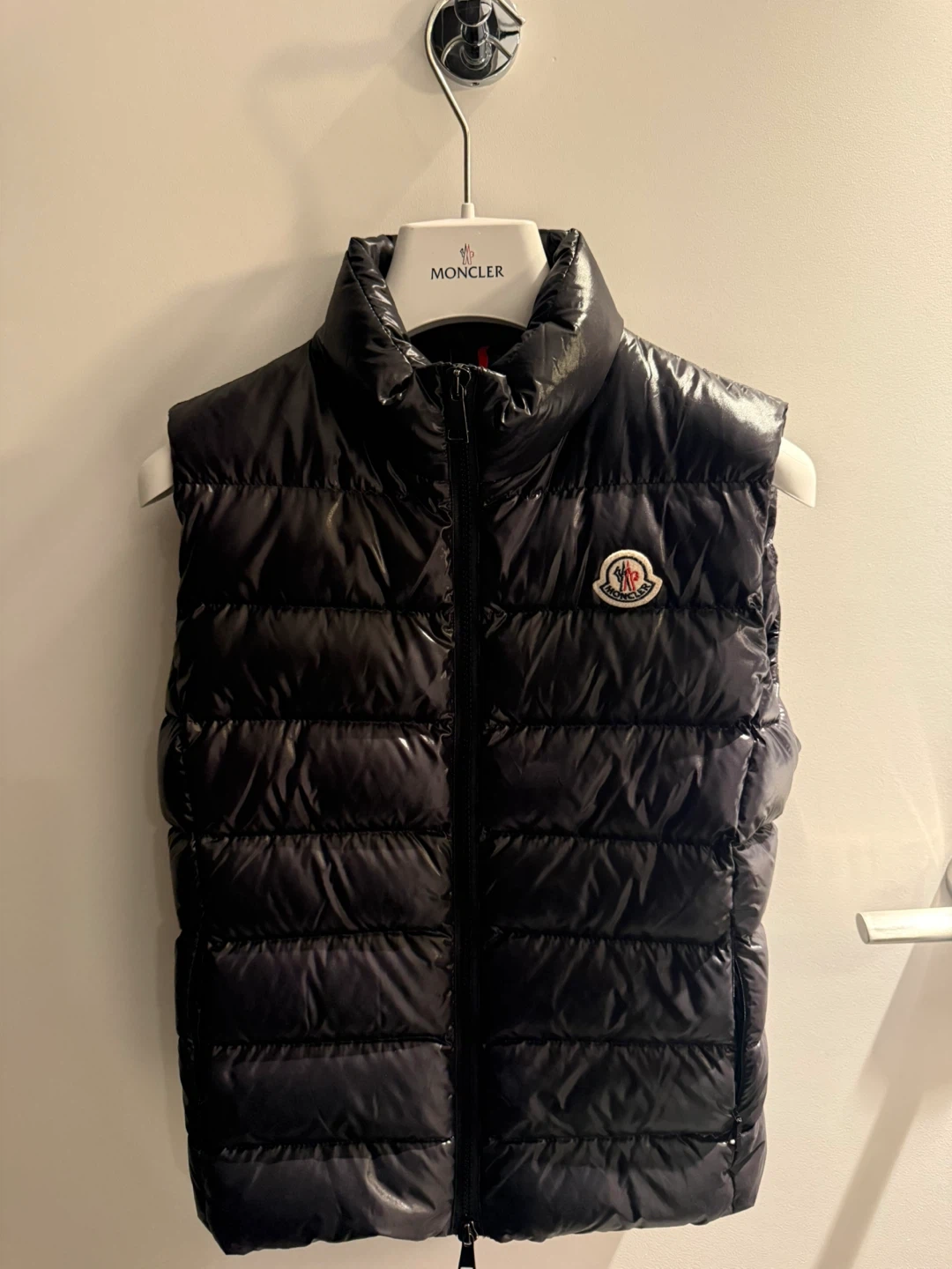 Selling a Moncler black padded down vest.